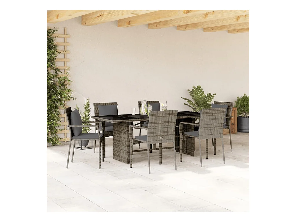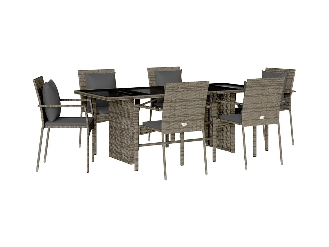 Anselm Ensemble à manger de jardin et coussins 7 pcs gris rotin