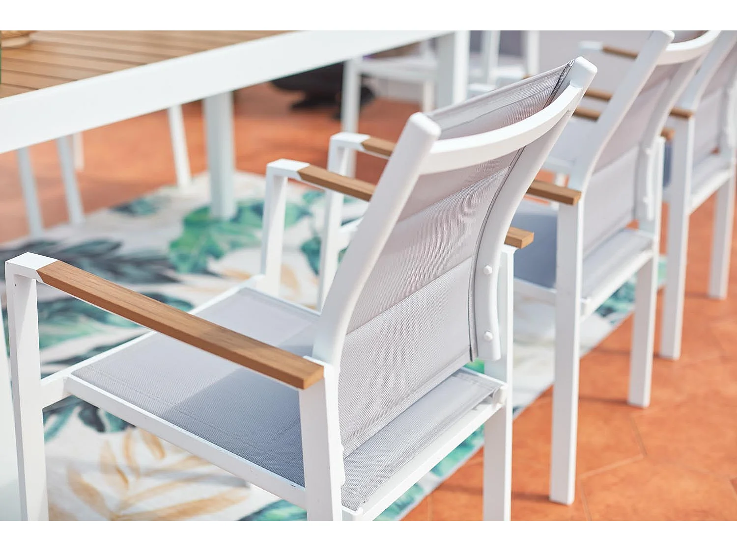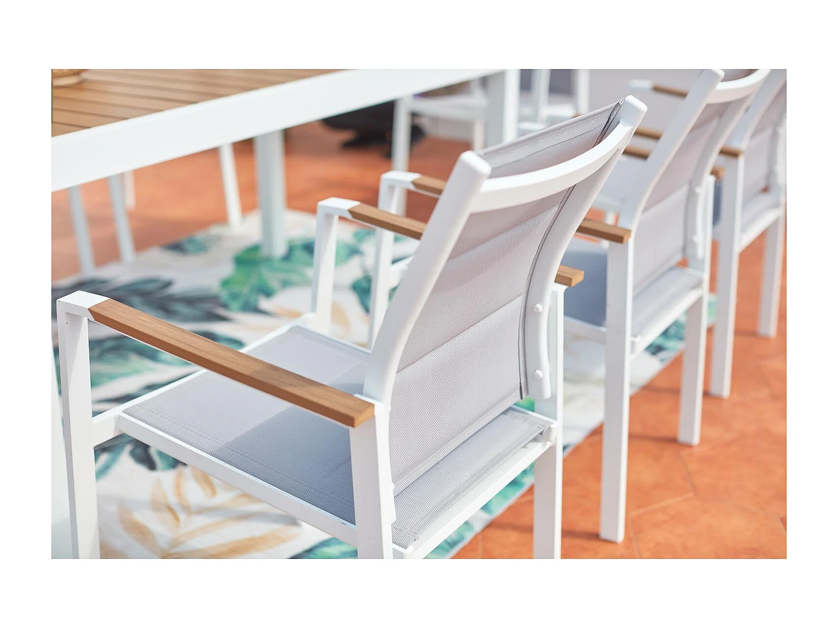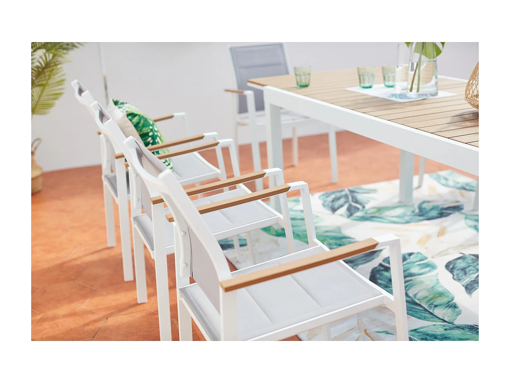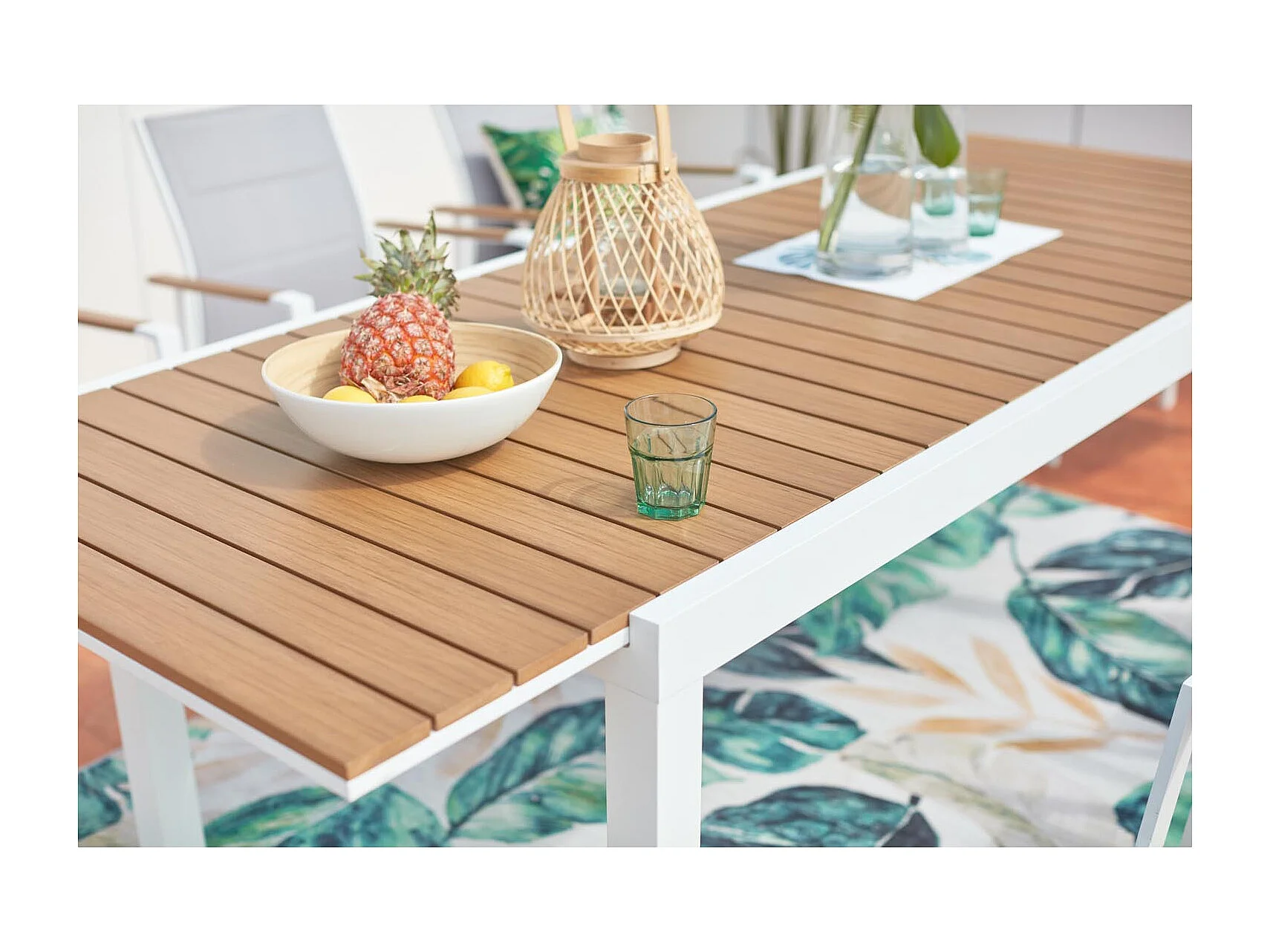 Salon de jardin 8 places aluminium blanc et bois TIJUANA