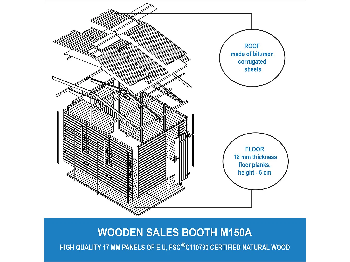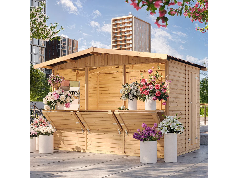 Maison de jardin en bois, étal de marché en bois - H232x336x263 cm/6m2 - M150A