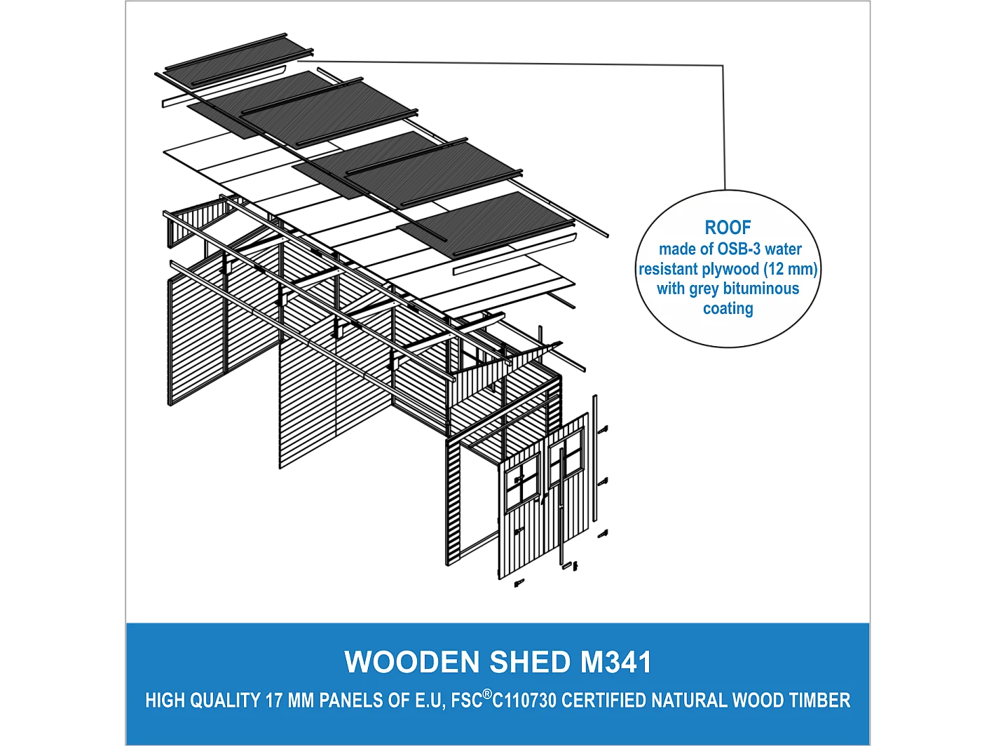 Abri de jardin en bois (sans paroi latérale) - 10 m2 - M341
