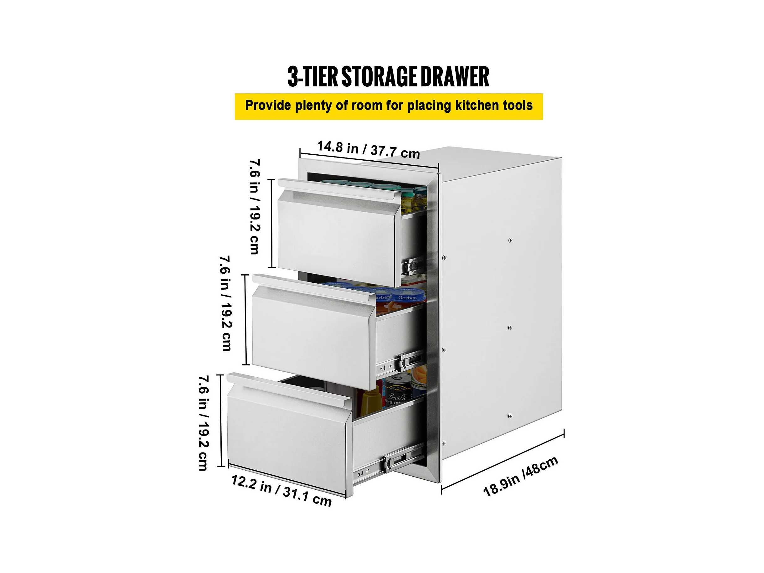 Tiroir à Triple Accès SucceBuy, Encastré Tiroir à Triple Hauteur Style Surélevé, 35,6 x 51,6 cm, Acier Inoxydable, pour Cuisiner à l'Extérieur Faire