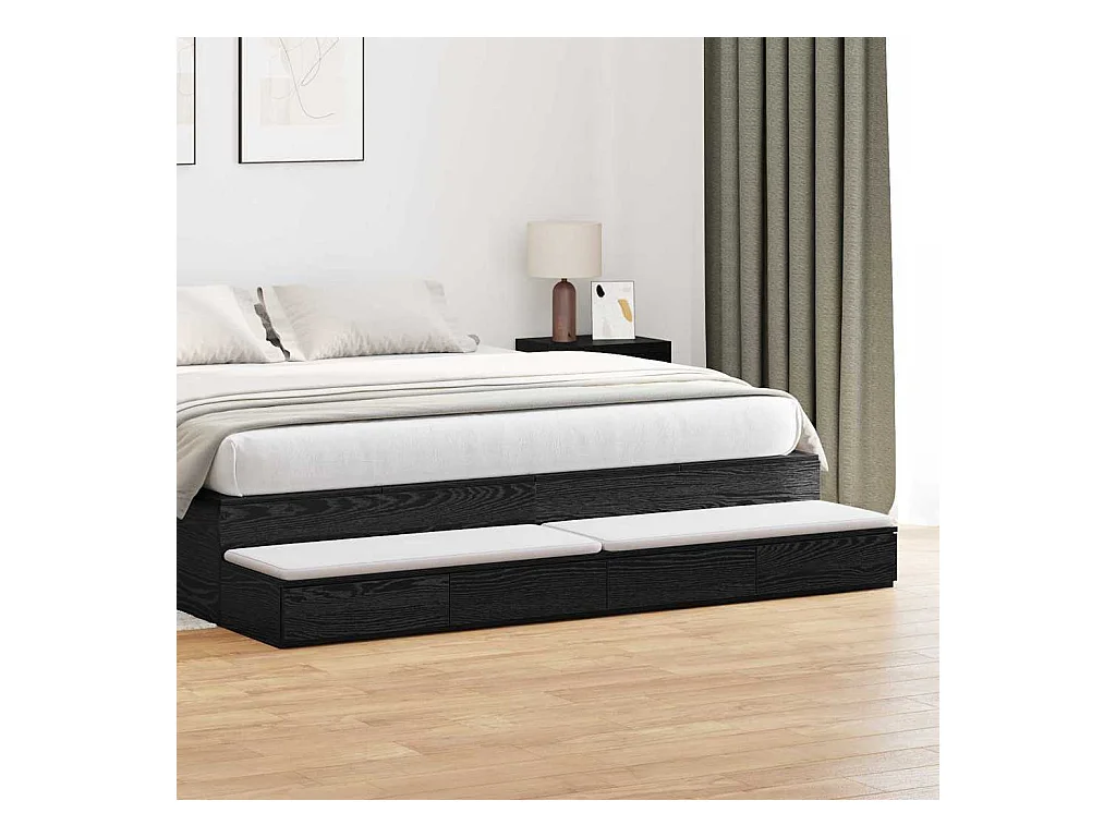 Tiroirs de lit Noir 180x36,5x16,5 cm en bois aggloméré