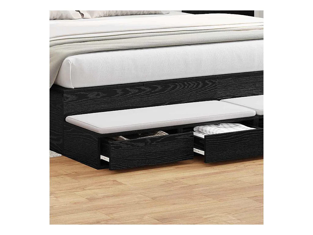 Tiroirs de lit Noir 140x36,5x16,5 cm en bois d'ingénierie