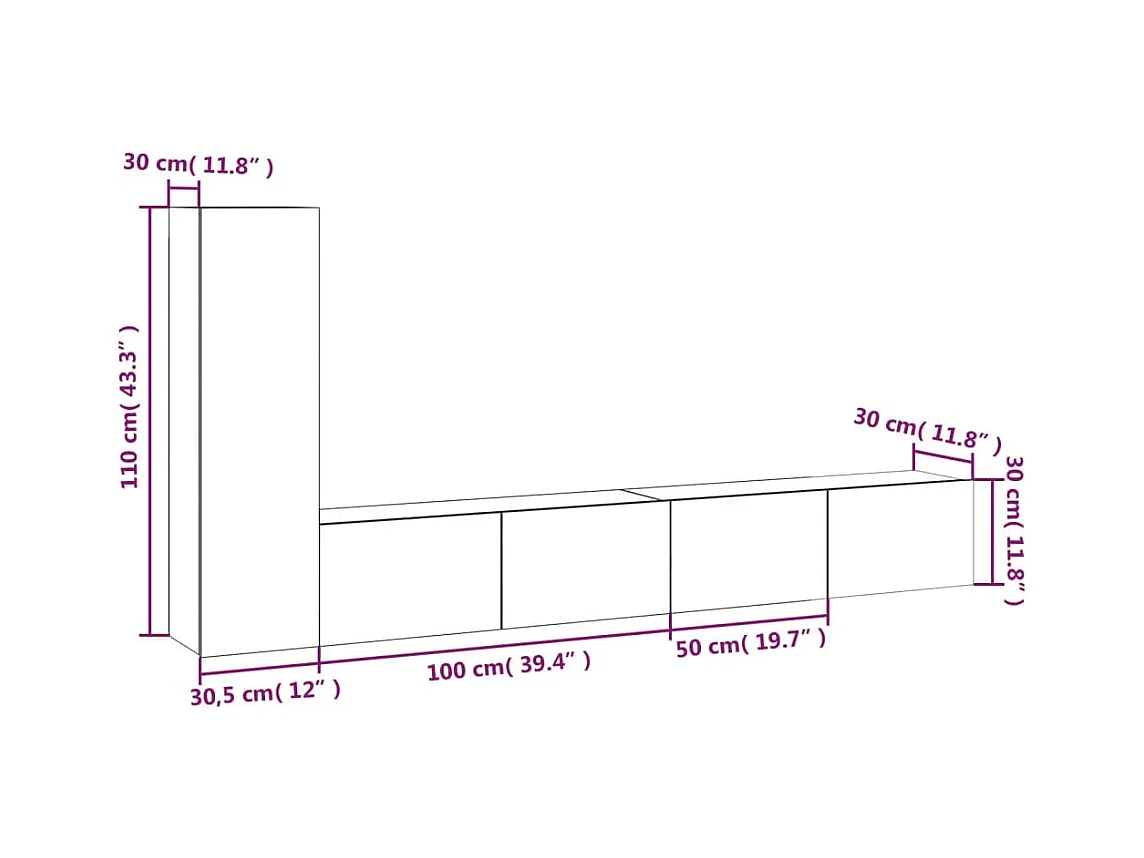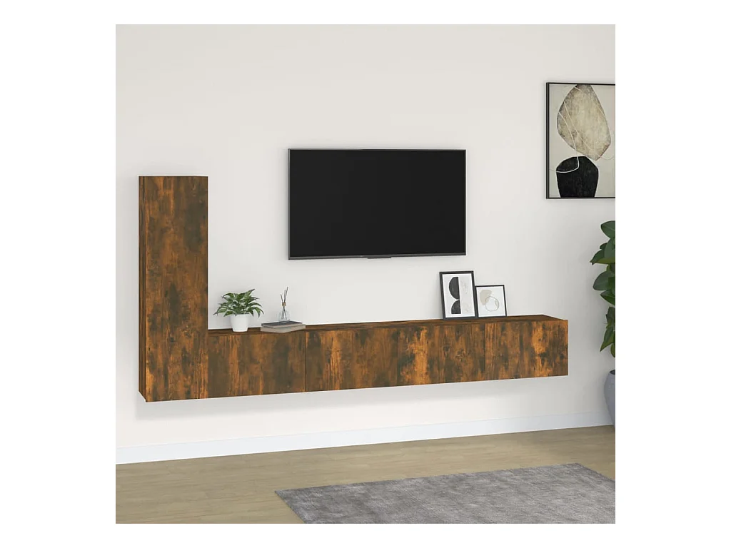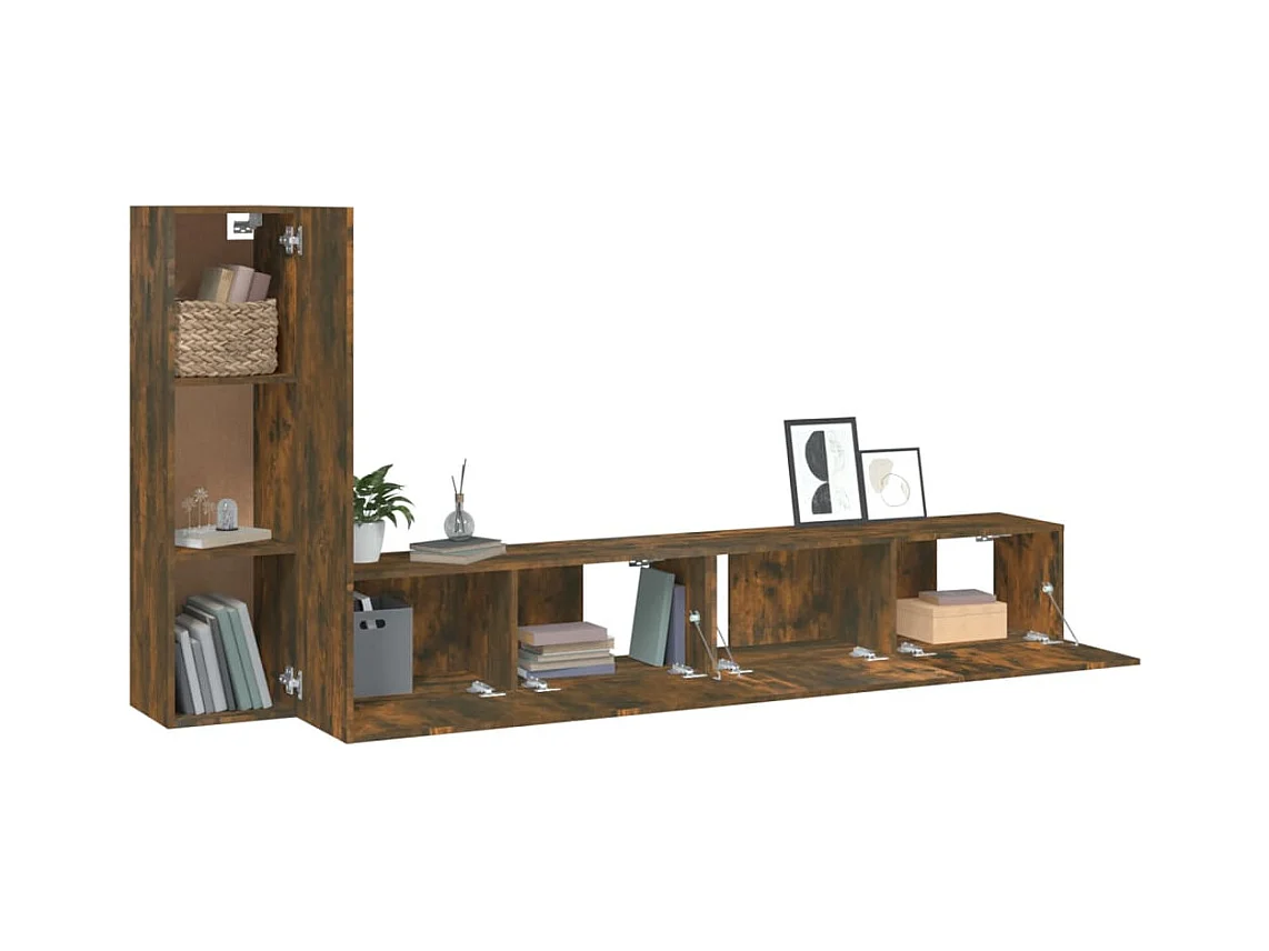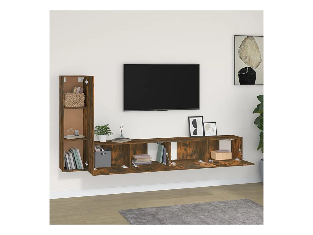 Elwin Ensemble de meubles TV 4 pcs Chêne fumé Bois d'ingénierie
