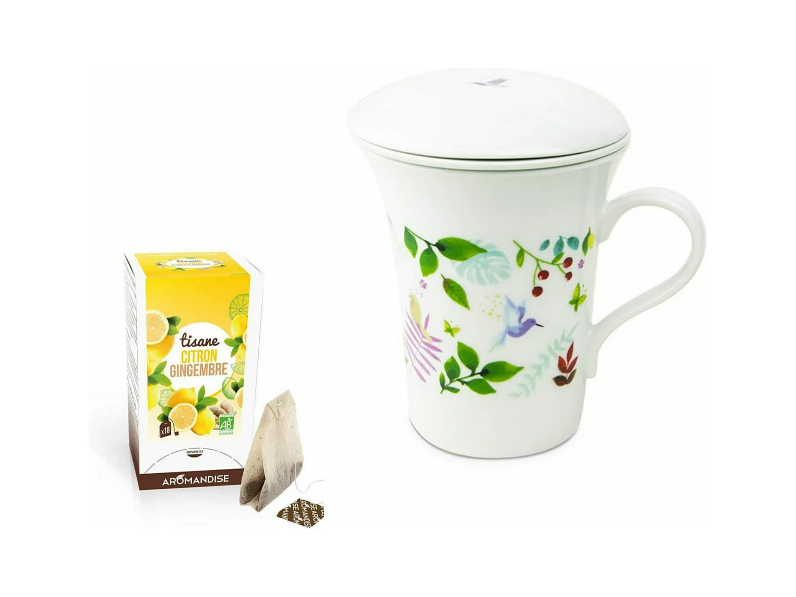 Tisanière fleurie porcelaine 250 ml + Tisane gingembre et citron bio