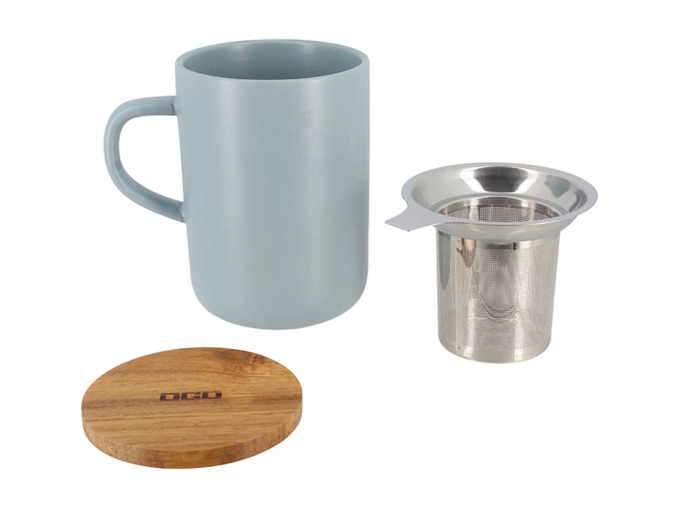 Ogo Living - Tisaniere Juliet Perle En Gres Et Couvercle En Acacia De 475 Ml Ogo
