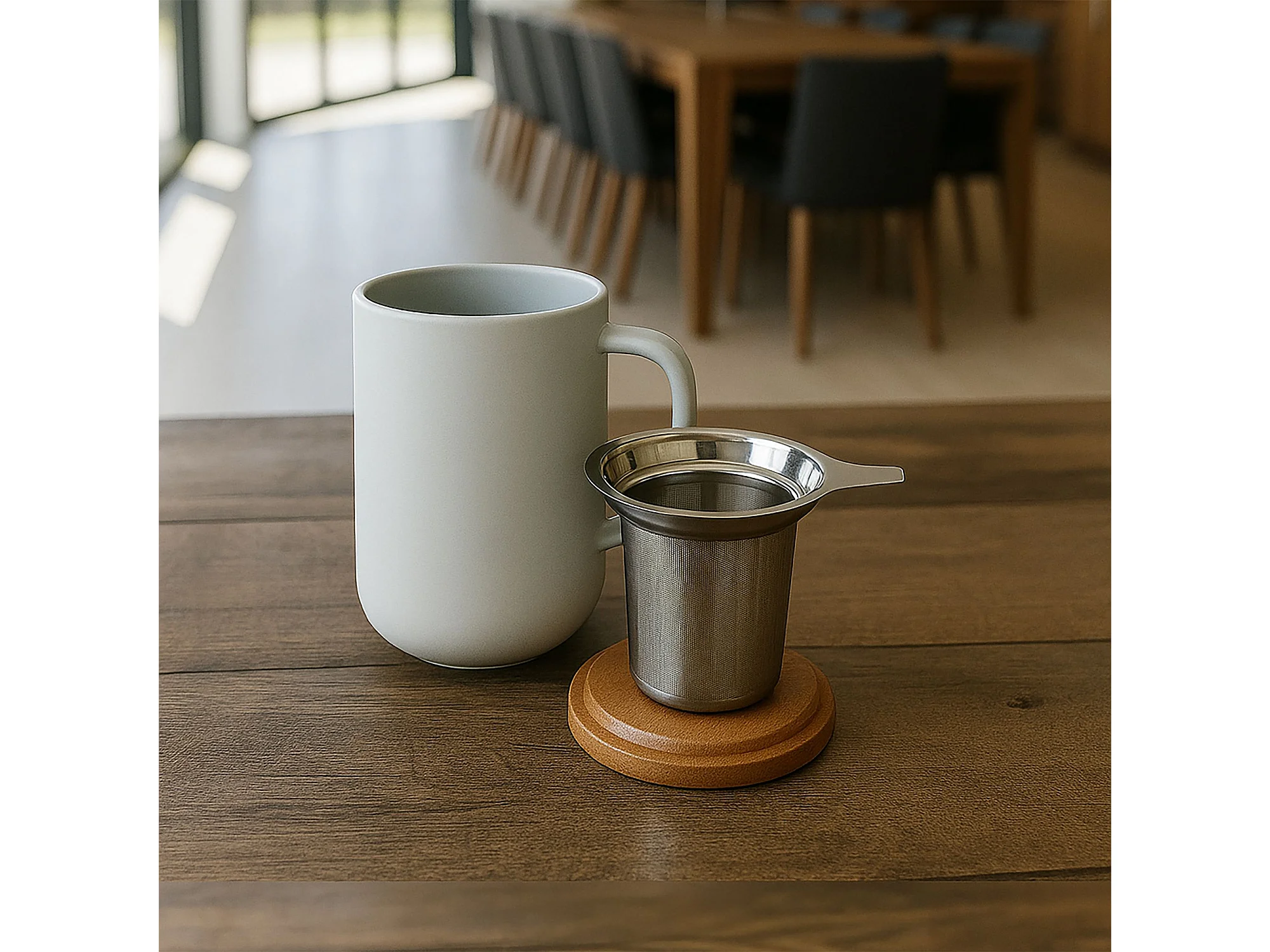 Tisanière Origami Cerf Kaki 450ml avec Infuseur à Thé Amovible et Couvercle en Bois