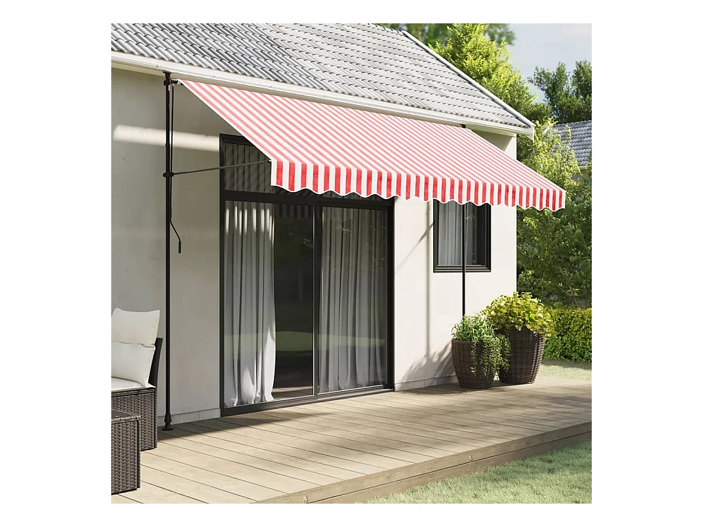 Tissu de remplacement de cantonnière d’auvent rouge blanc 3,5 m