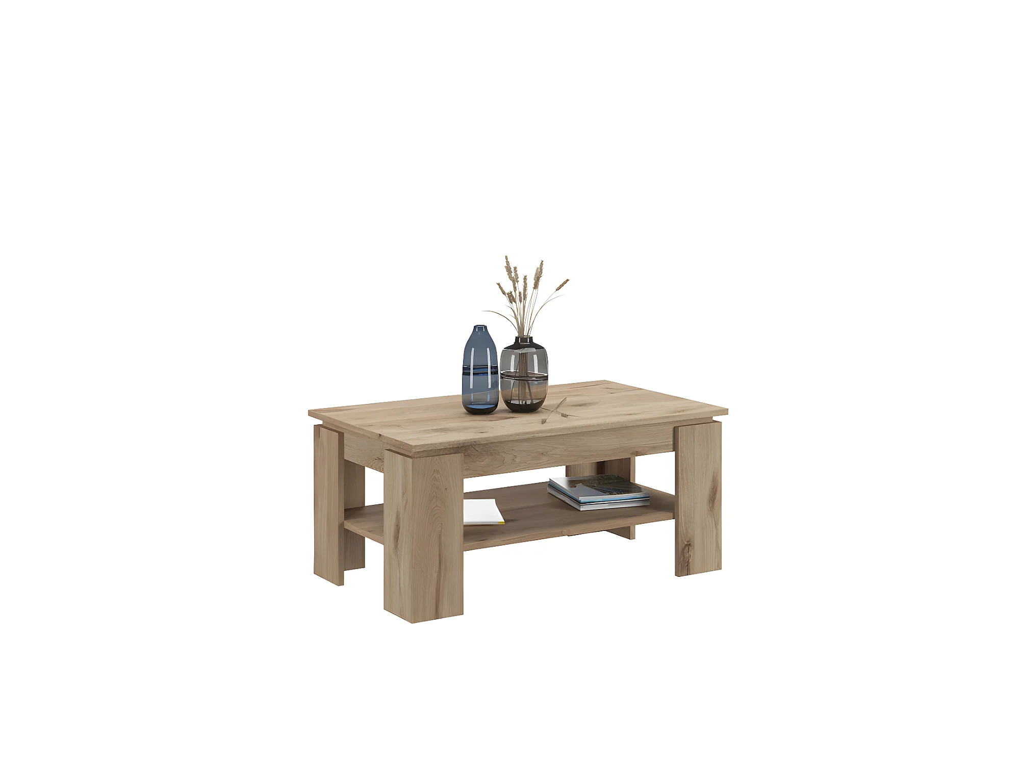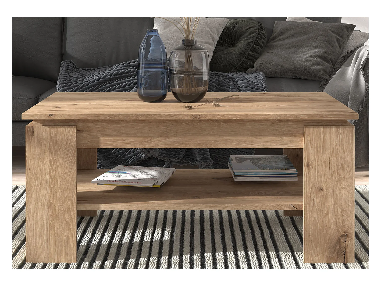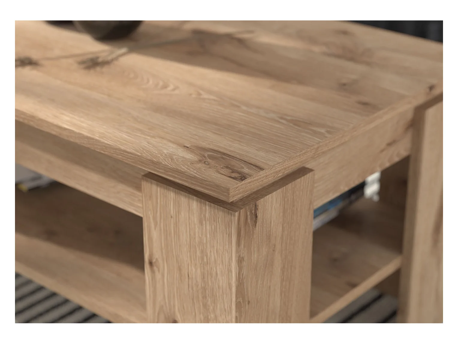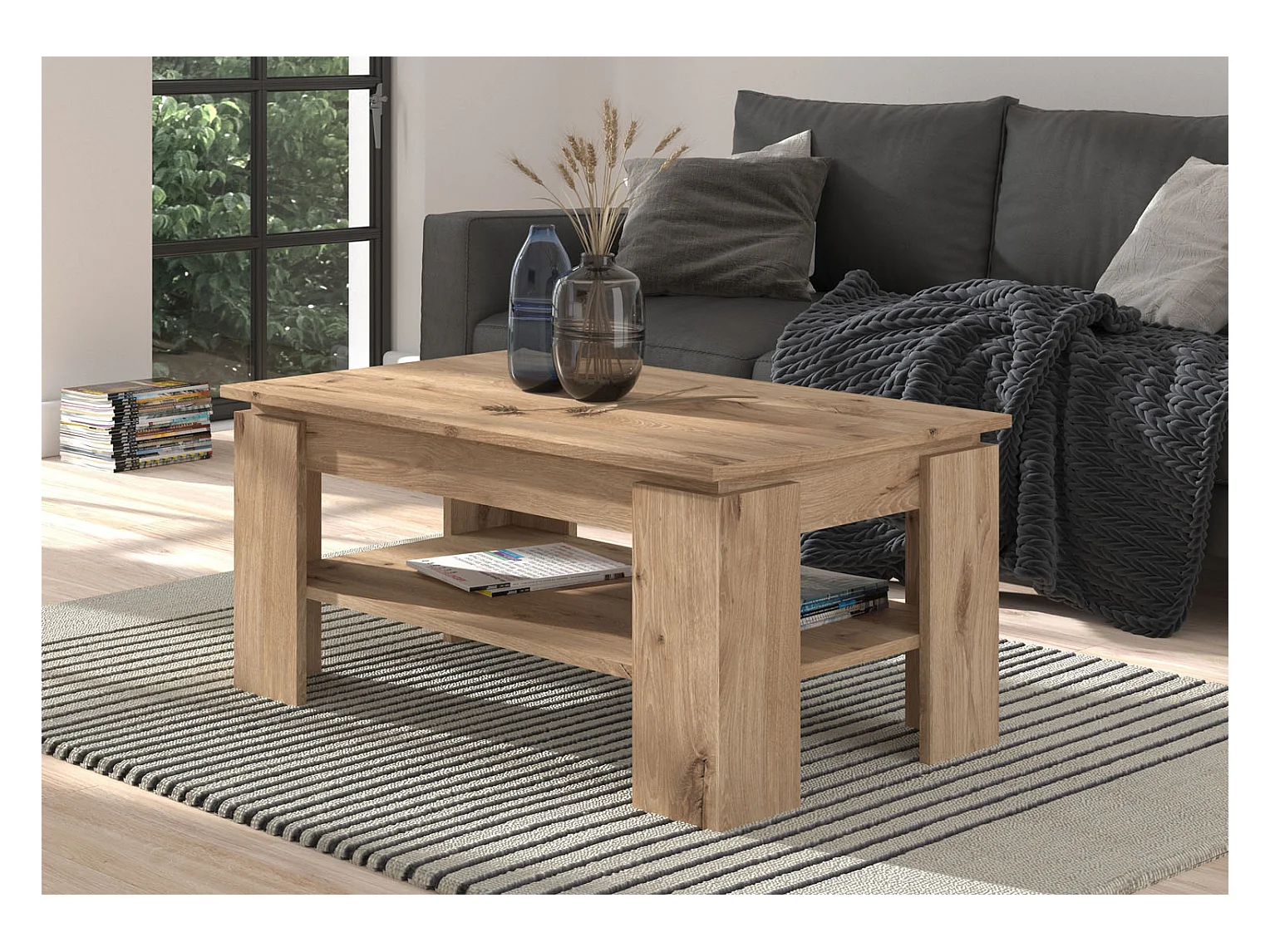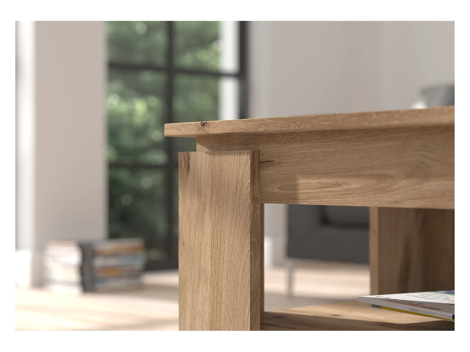 Table basse chêne artisanal 100x60x42 cm bois d'ingénierie