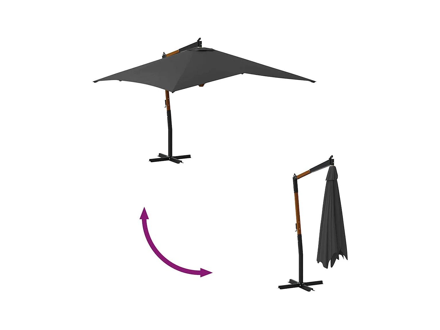 Tjerka Parasol de jardin en porte-à-faux avec mât en bois anthracite