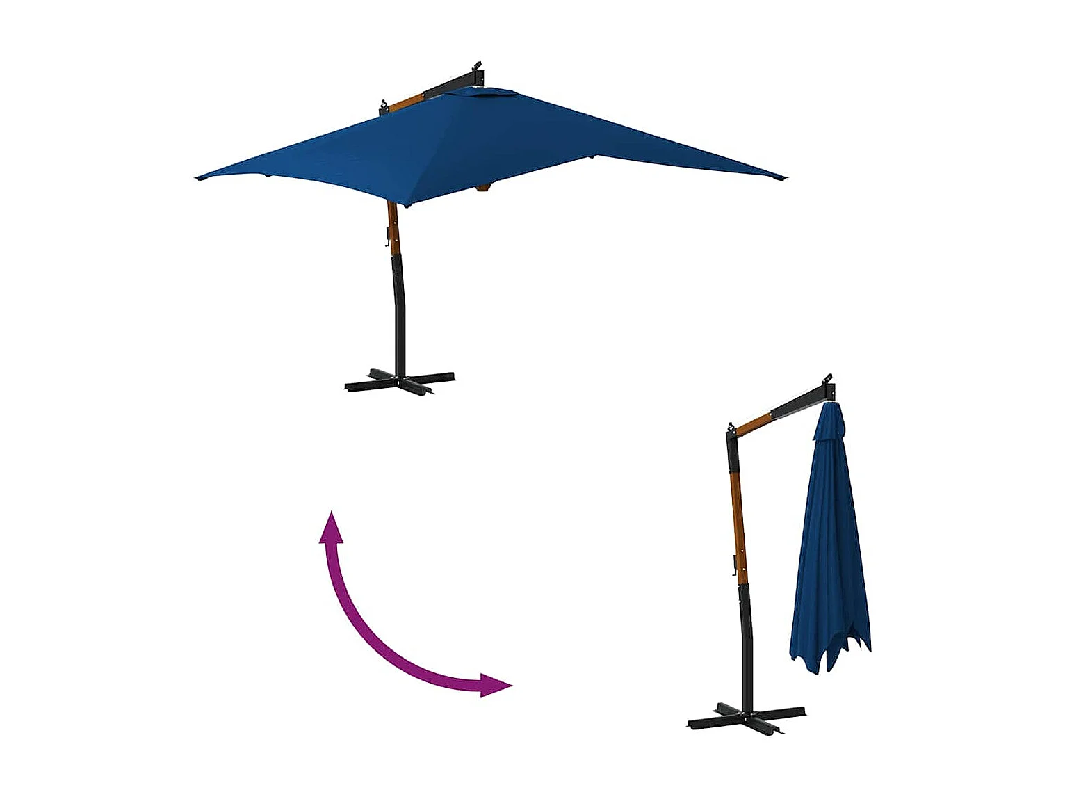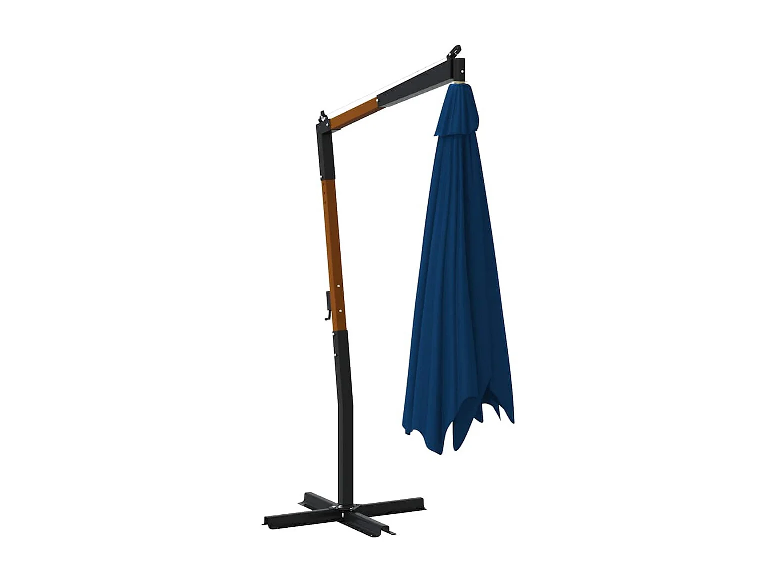 Tjerka Parasol de jardin en porte-à-faux avec mât en bois bleu azuré