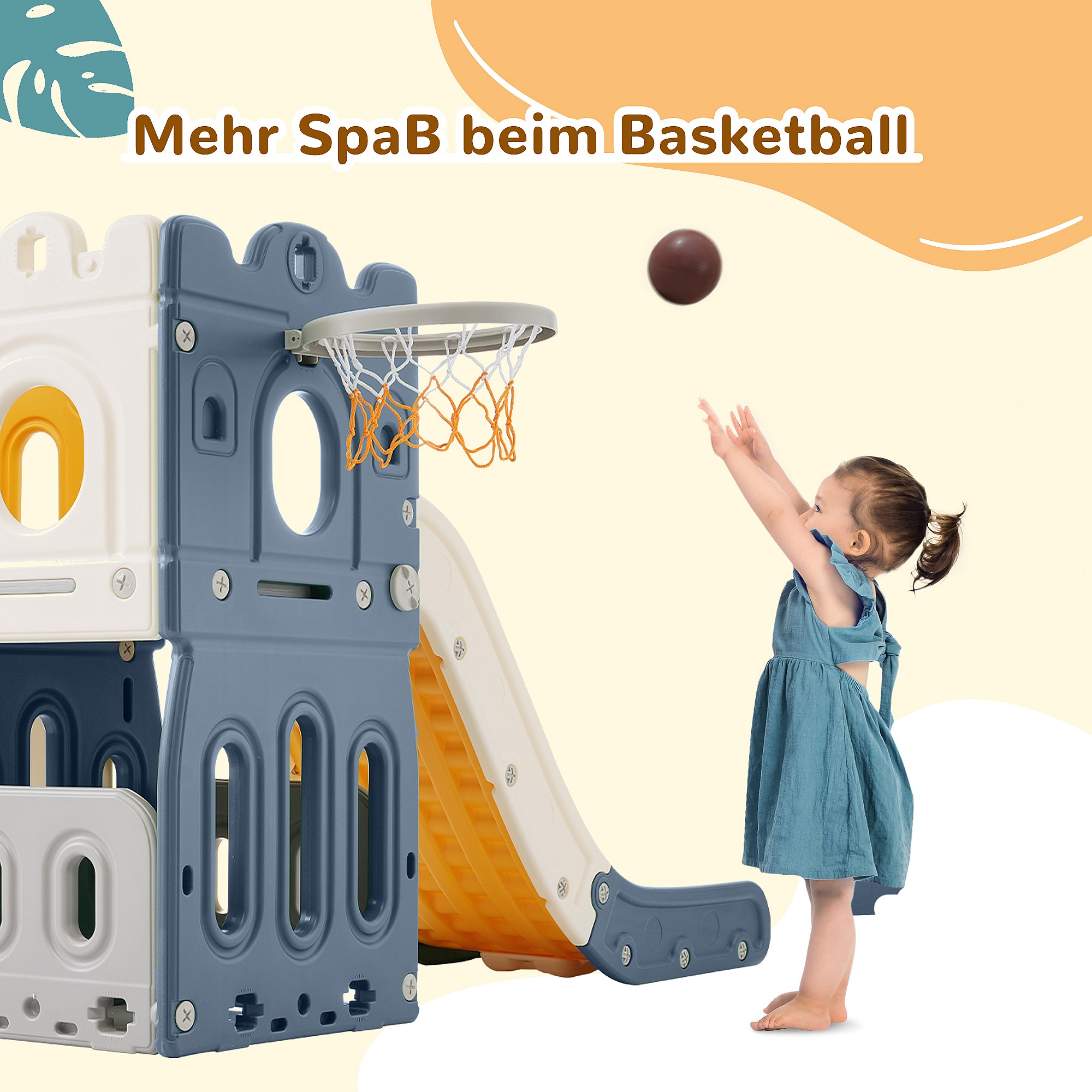 Jouet d'escalade 190x151x106cm 6 en 1 Toboggan pour Enfants Panier Basketball Échelle Tour Château Rangement Sans Balles PEHD Bleu