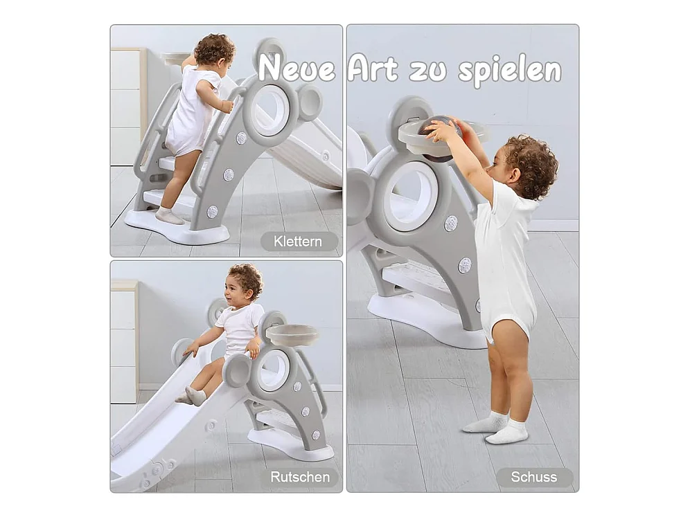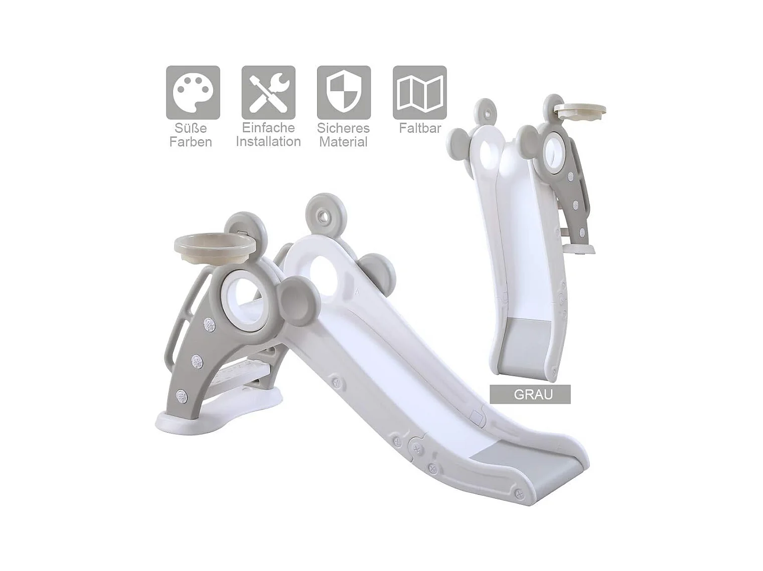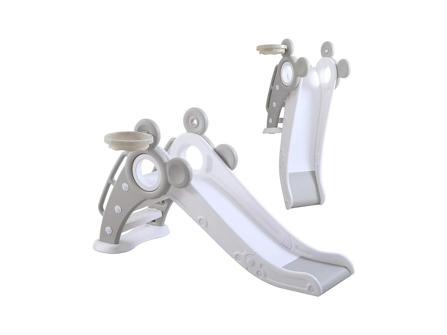 Toboggan de Jardin Pliable avec Panier de Basketball Yoleo pour Enfants de 1 à 3 Ans, Gris