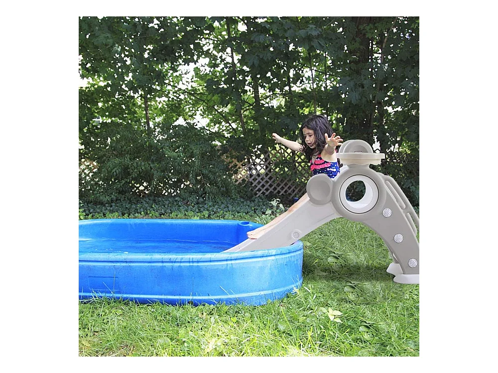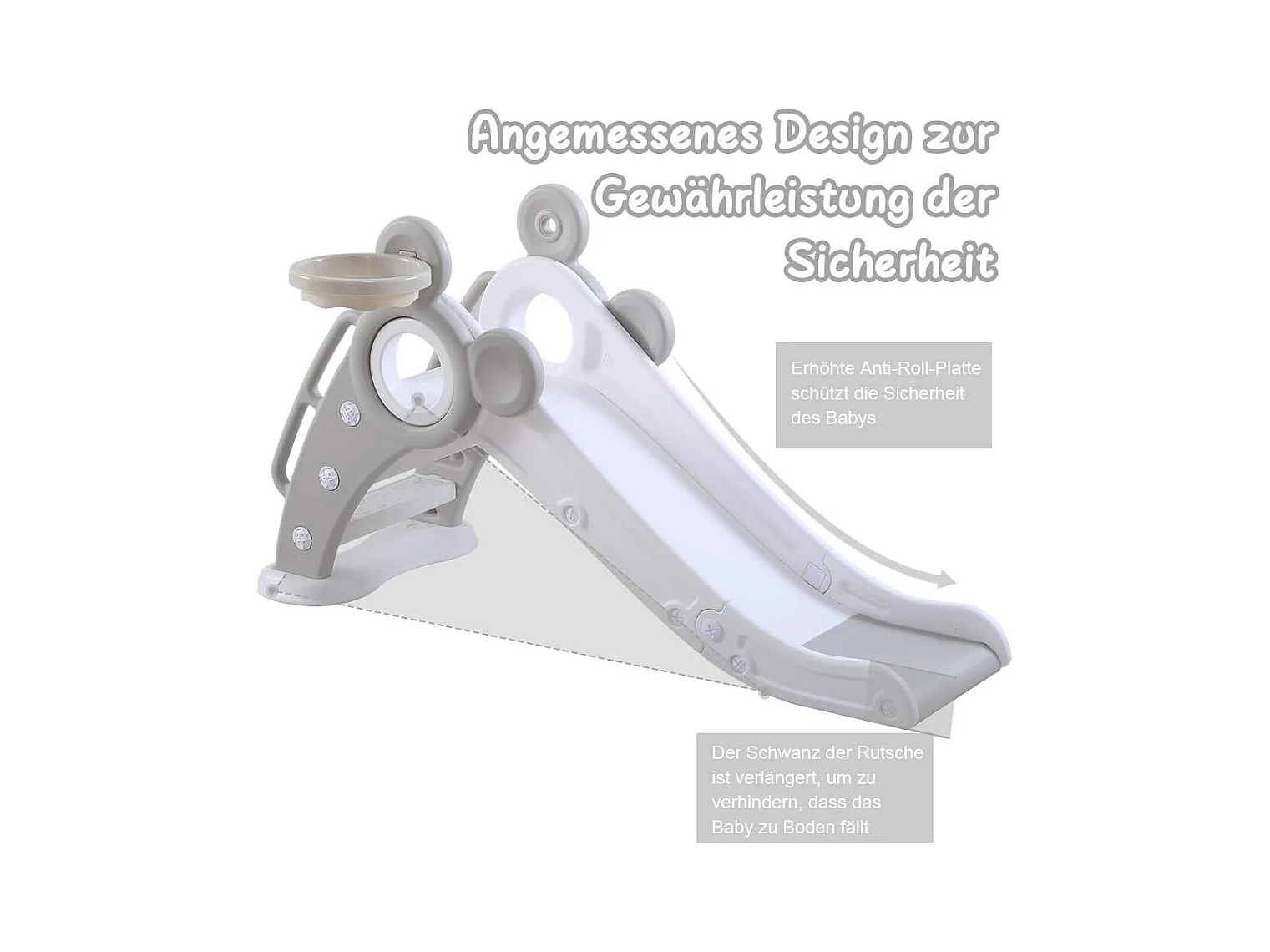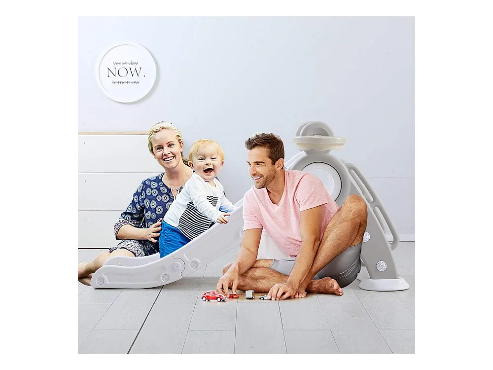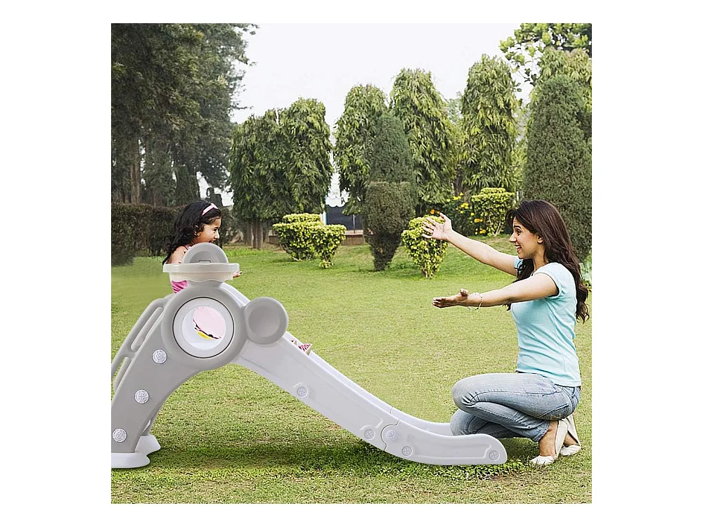 Toboggan de Jardin Pliable avec Panier de Basketball Yoleo pour Enfants de 1 à 3 Ans, Gris
