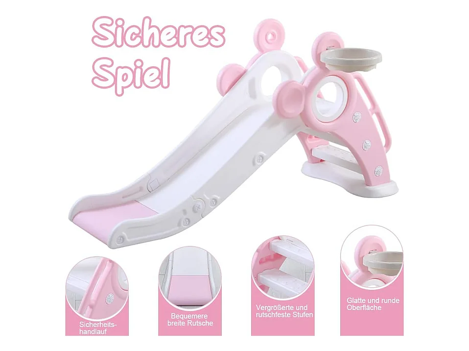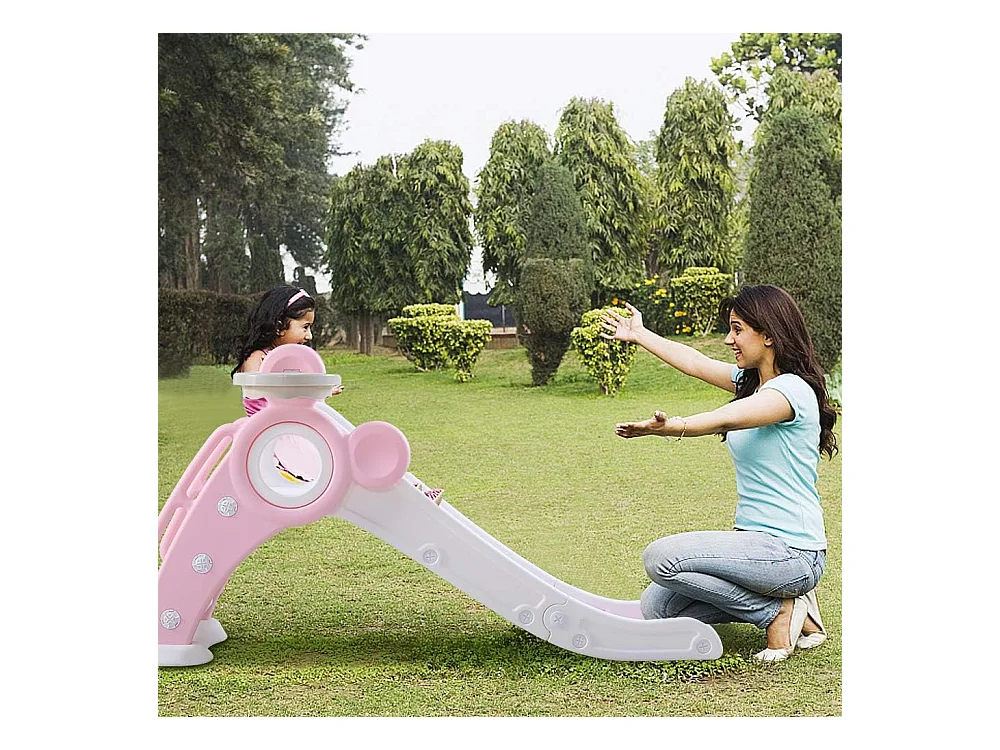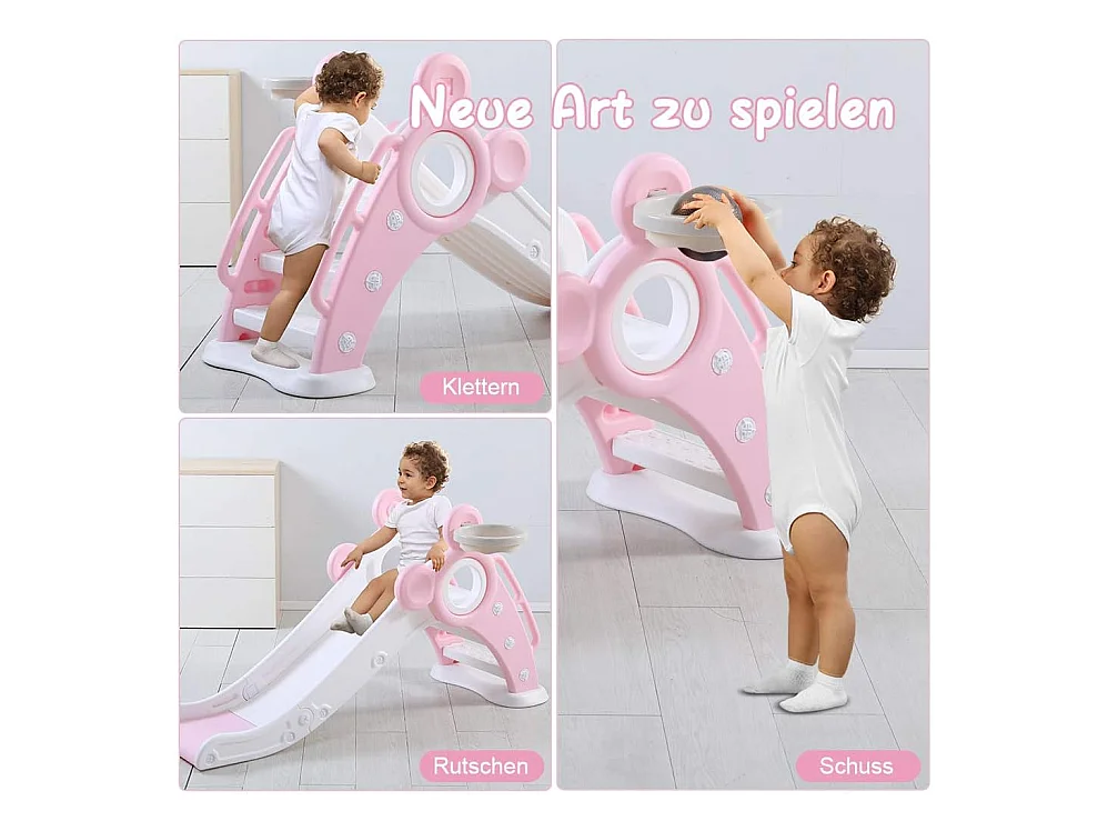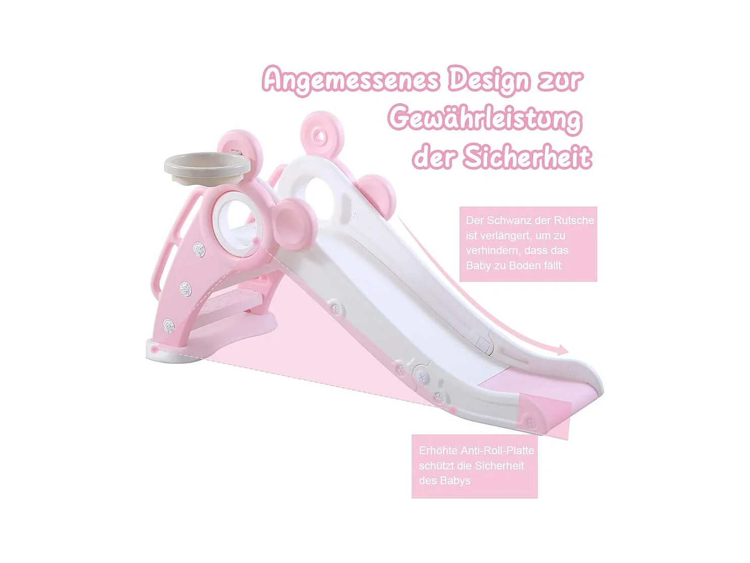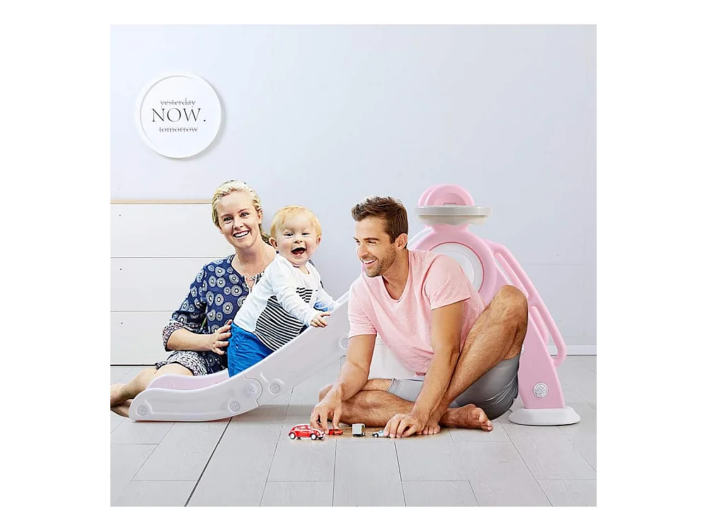 Toboggan de Jardin Pliable avec Panier de Basketball Yoleo pour Enfants de 1 à 3 Ans, Rose
