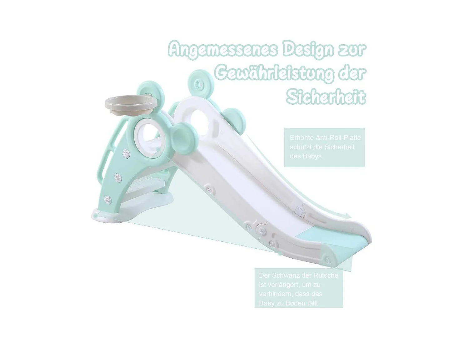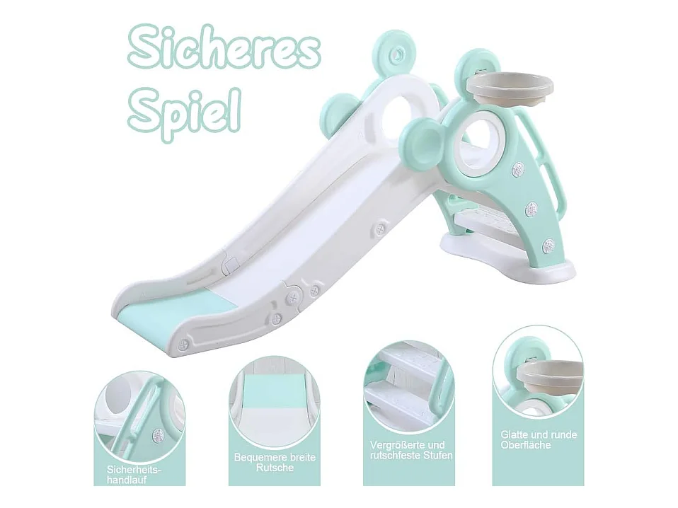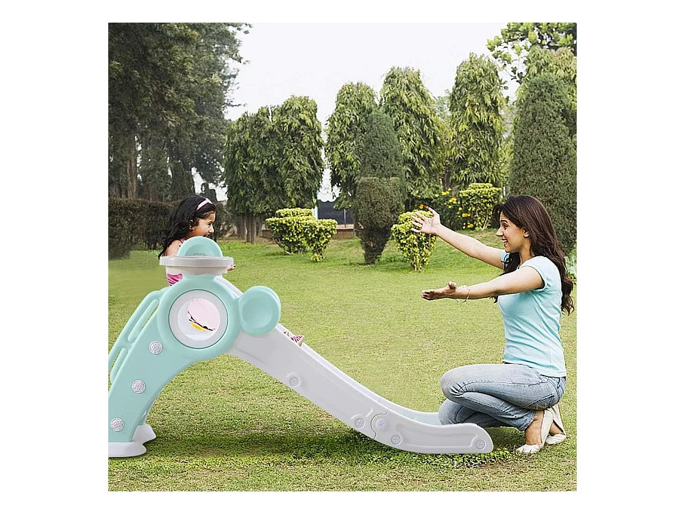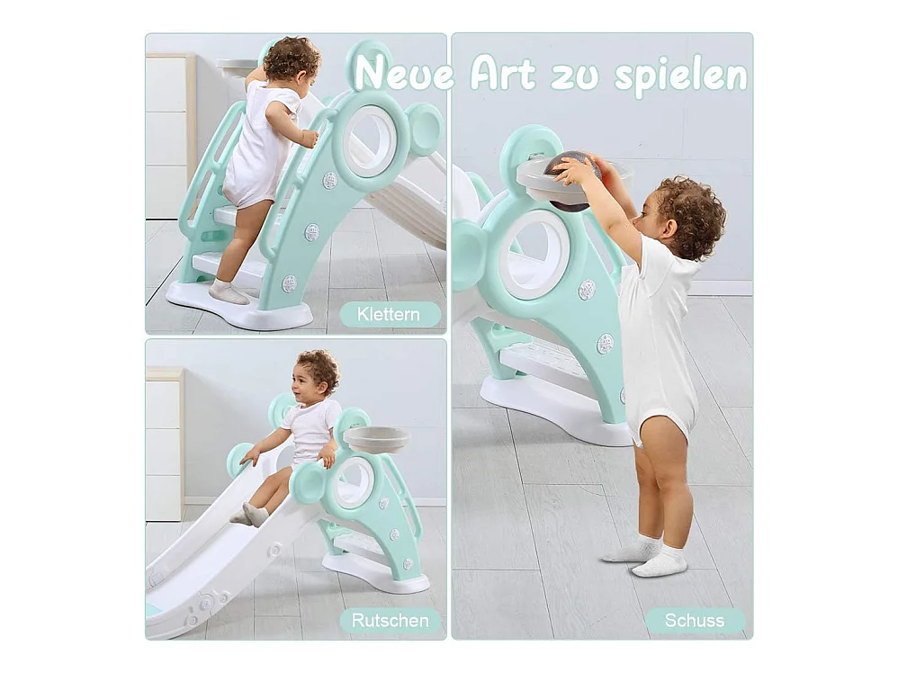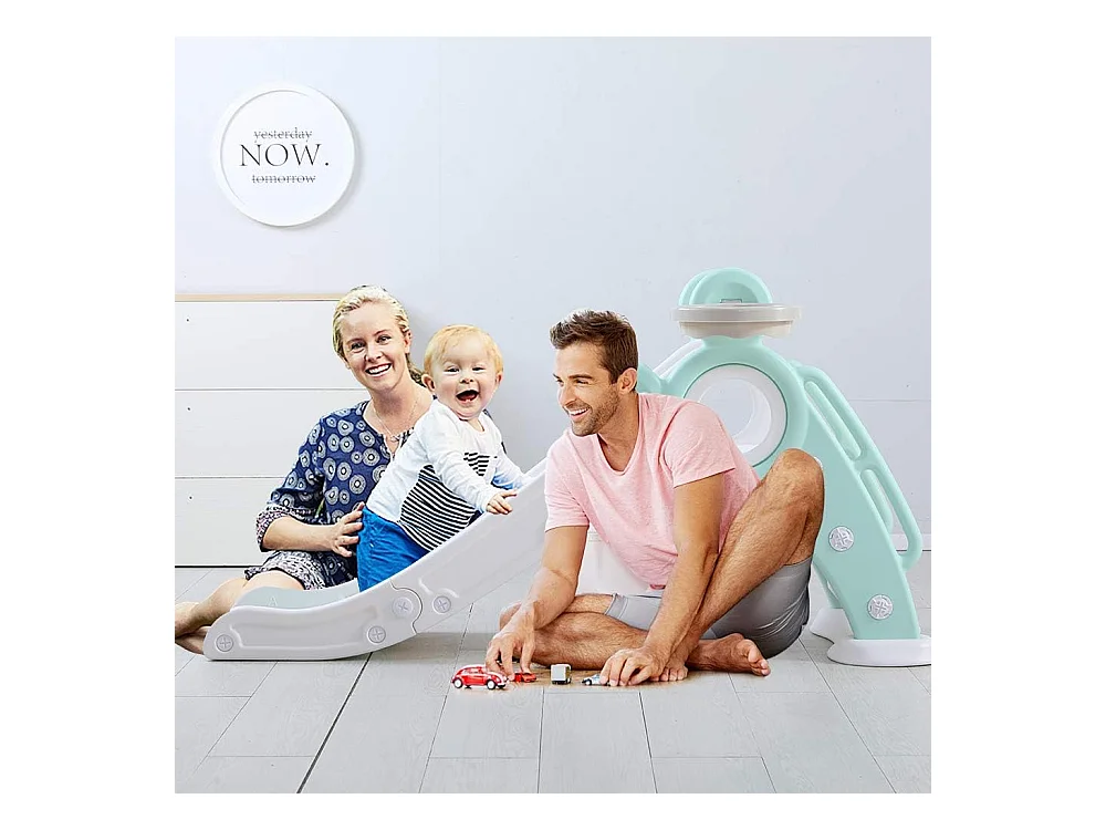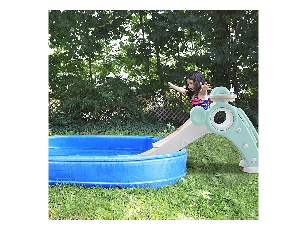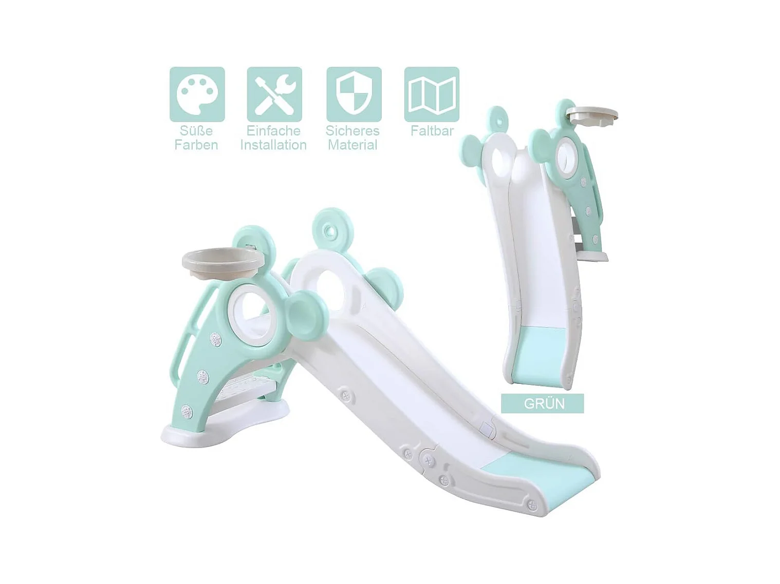 Toboggan de Jardin Pliable avec Panier de Basketball Yoleo pour Enfants de 1 à 3 Ans, Vert