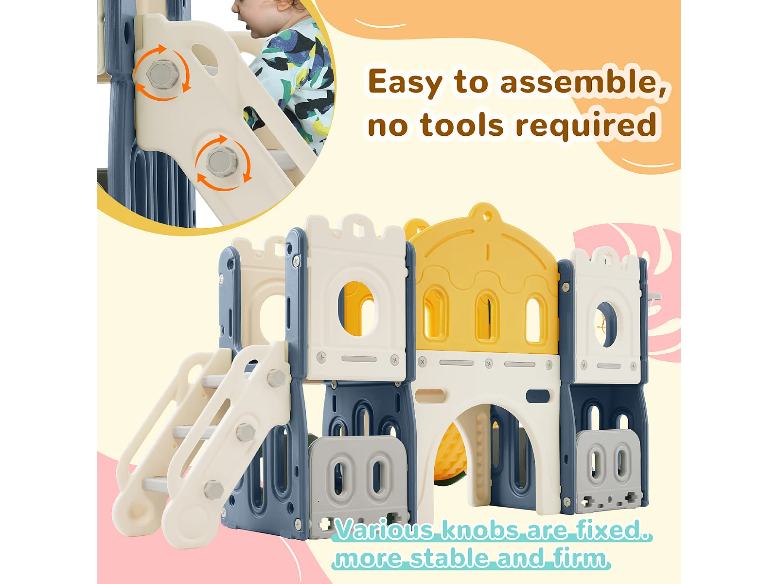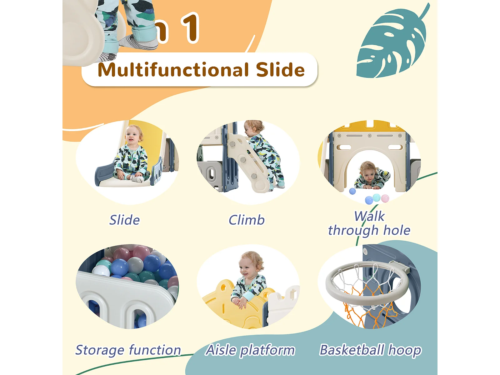 Toboggan pour enfants 6 en 1 - Avec panier de basket, toboggan, tour d'escalade, en PEHD (balles de mer non exclues) - Bleu