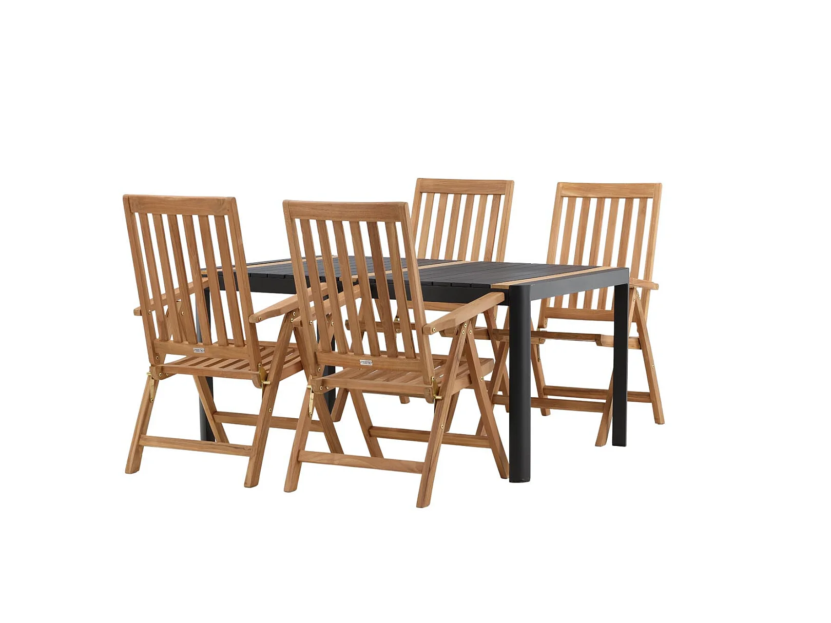 Togo ensemble table et chaises de jardin, table 150x100cm, 4 chaises Kenya, noir,naturel.