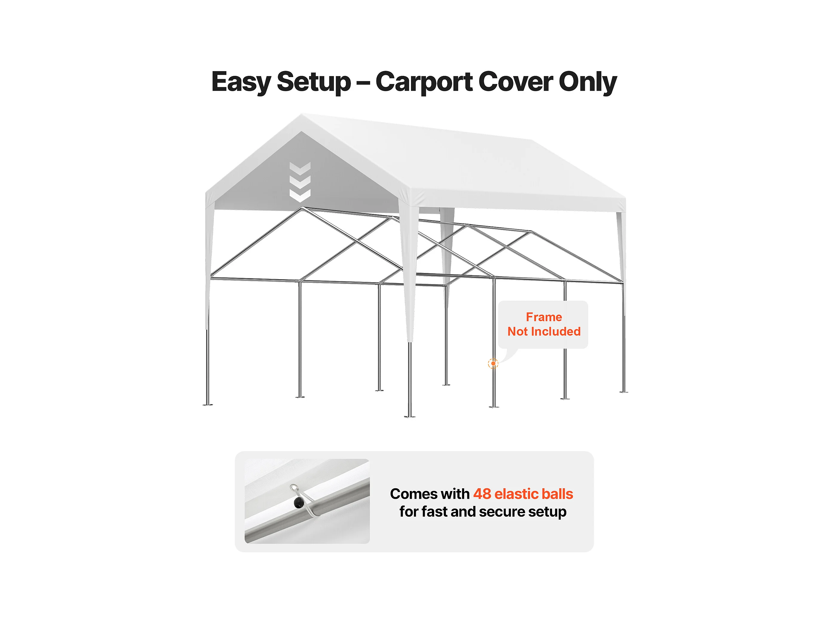 Toile de Rechange Carport SucceBuy, 6,09x3,65 m, Bâche Toit Abri Voiture, Couverture Supérieure Tente Garage Portable, Résistante UV Imperméable, Blanc
