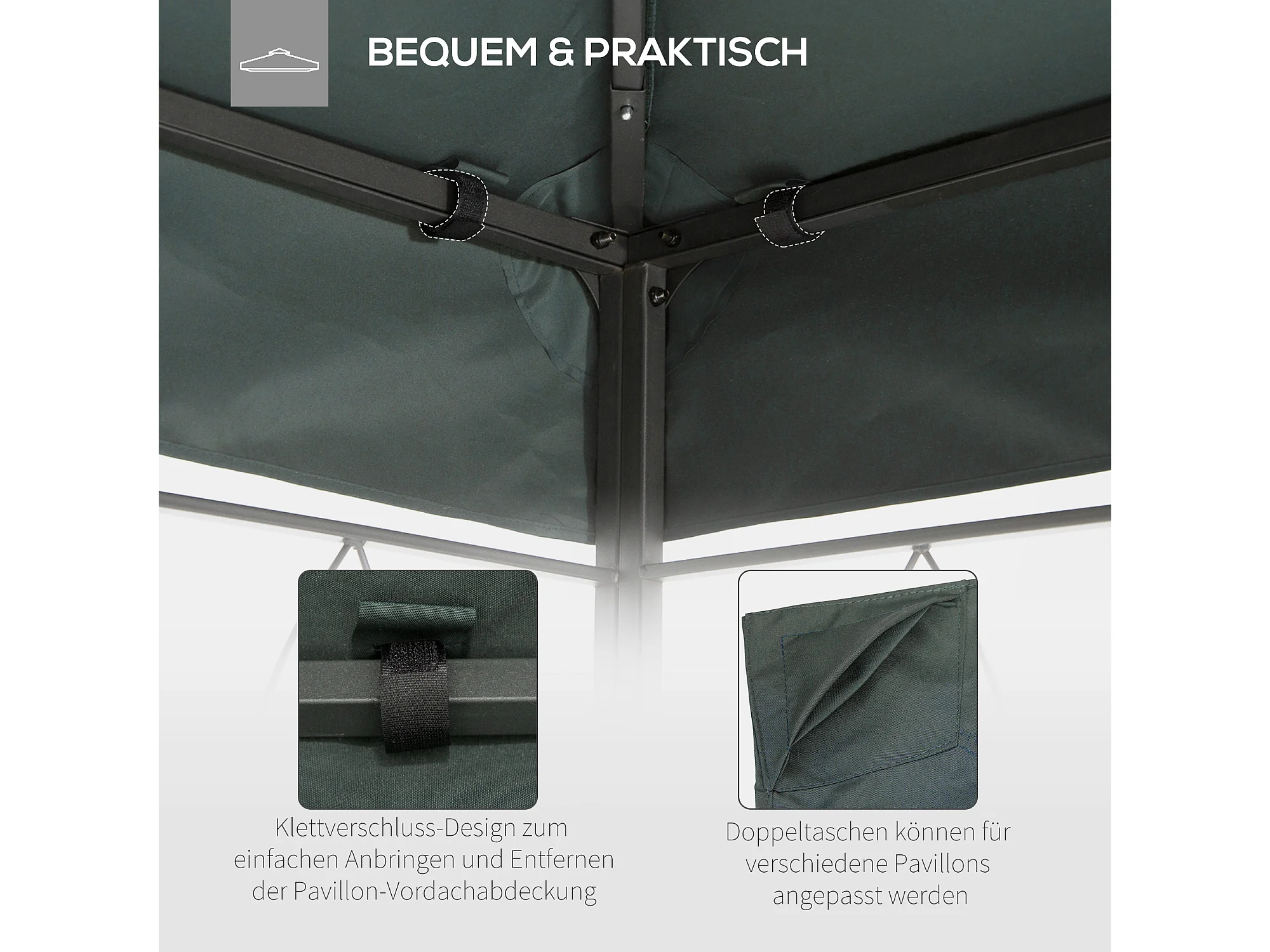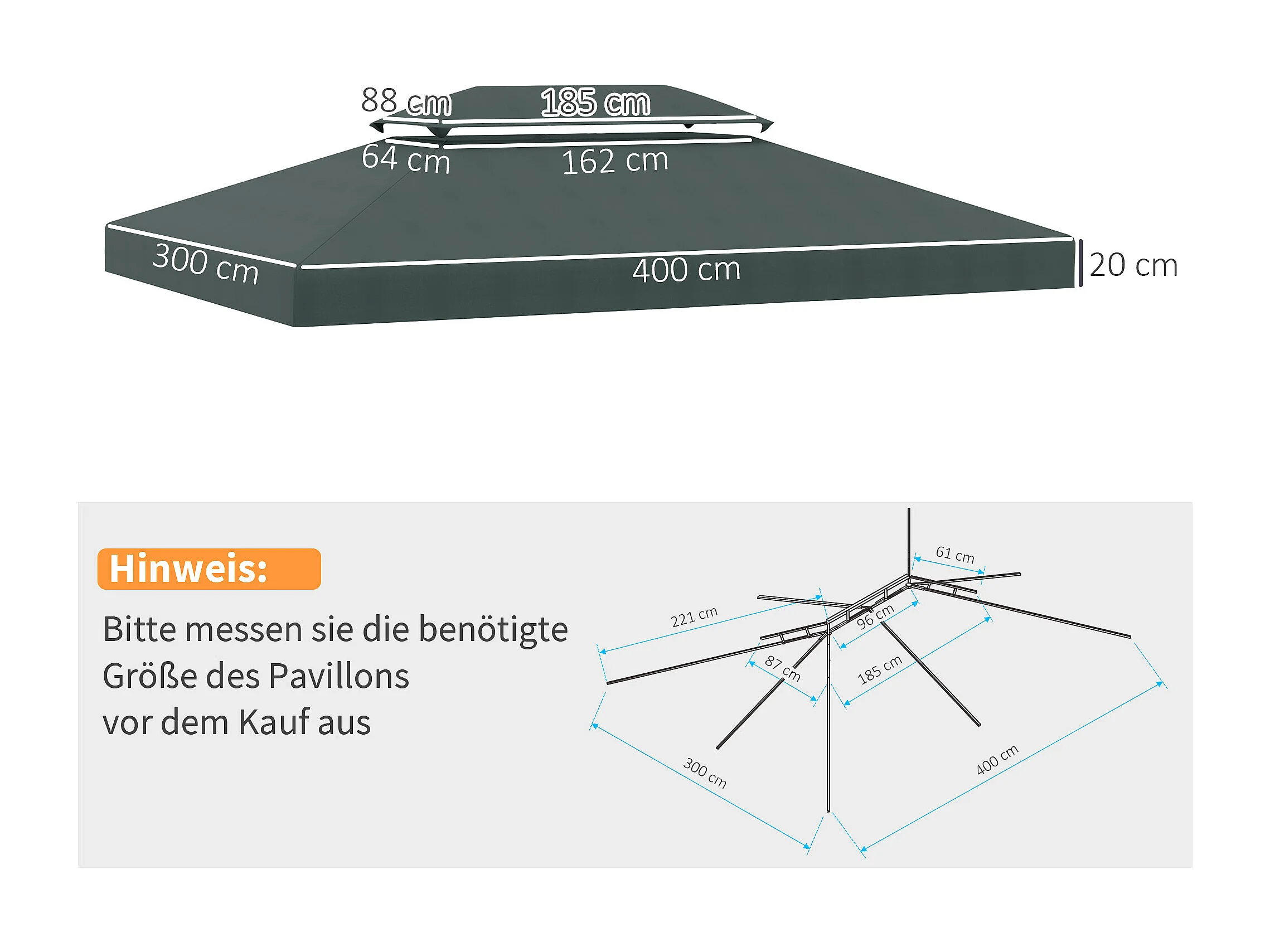 Toit de remplacement pour pavillon, double niveau, polyester résistant, charbon (300x400x20cm)