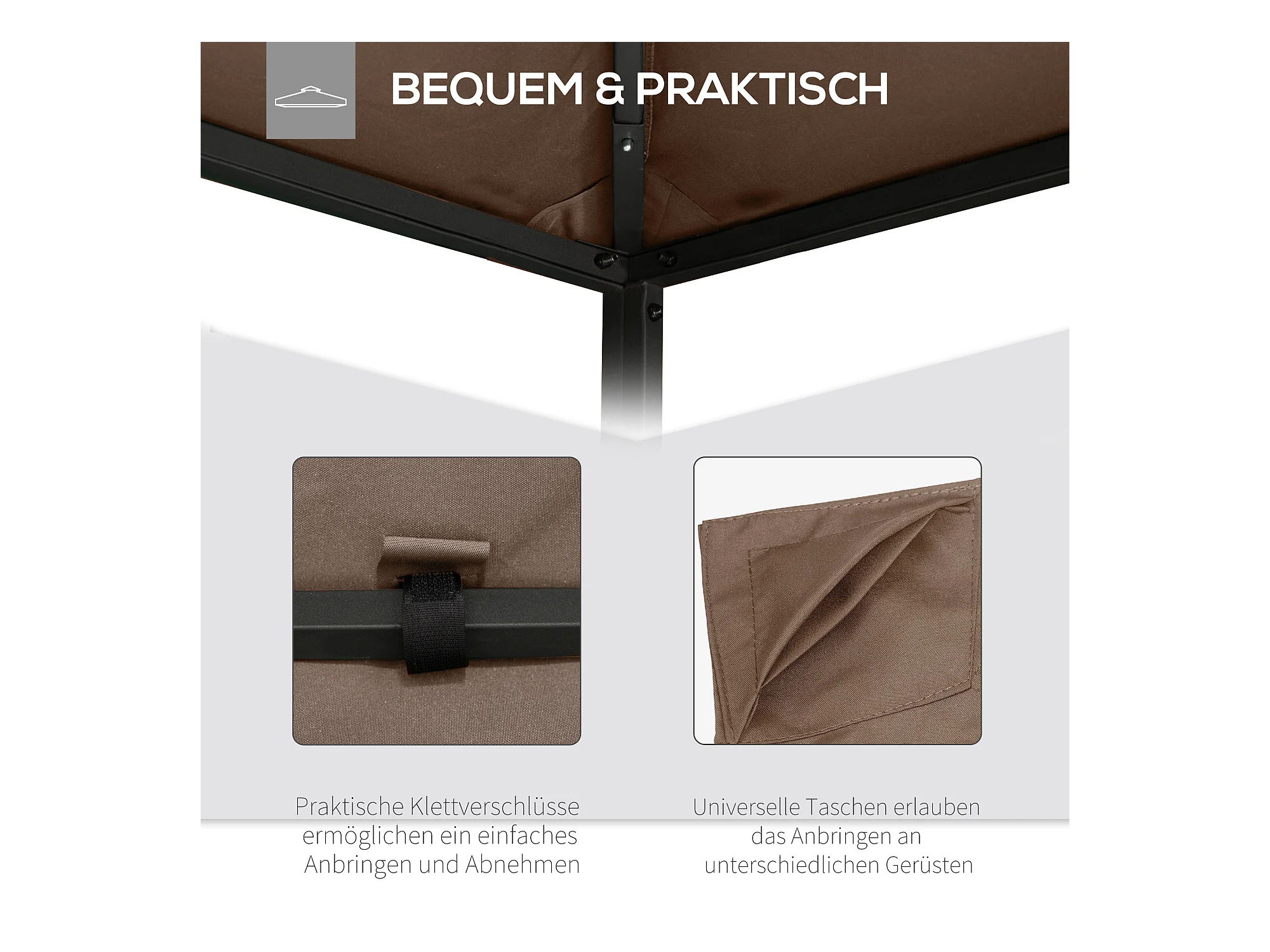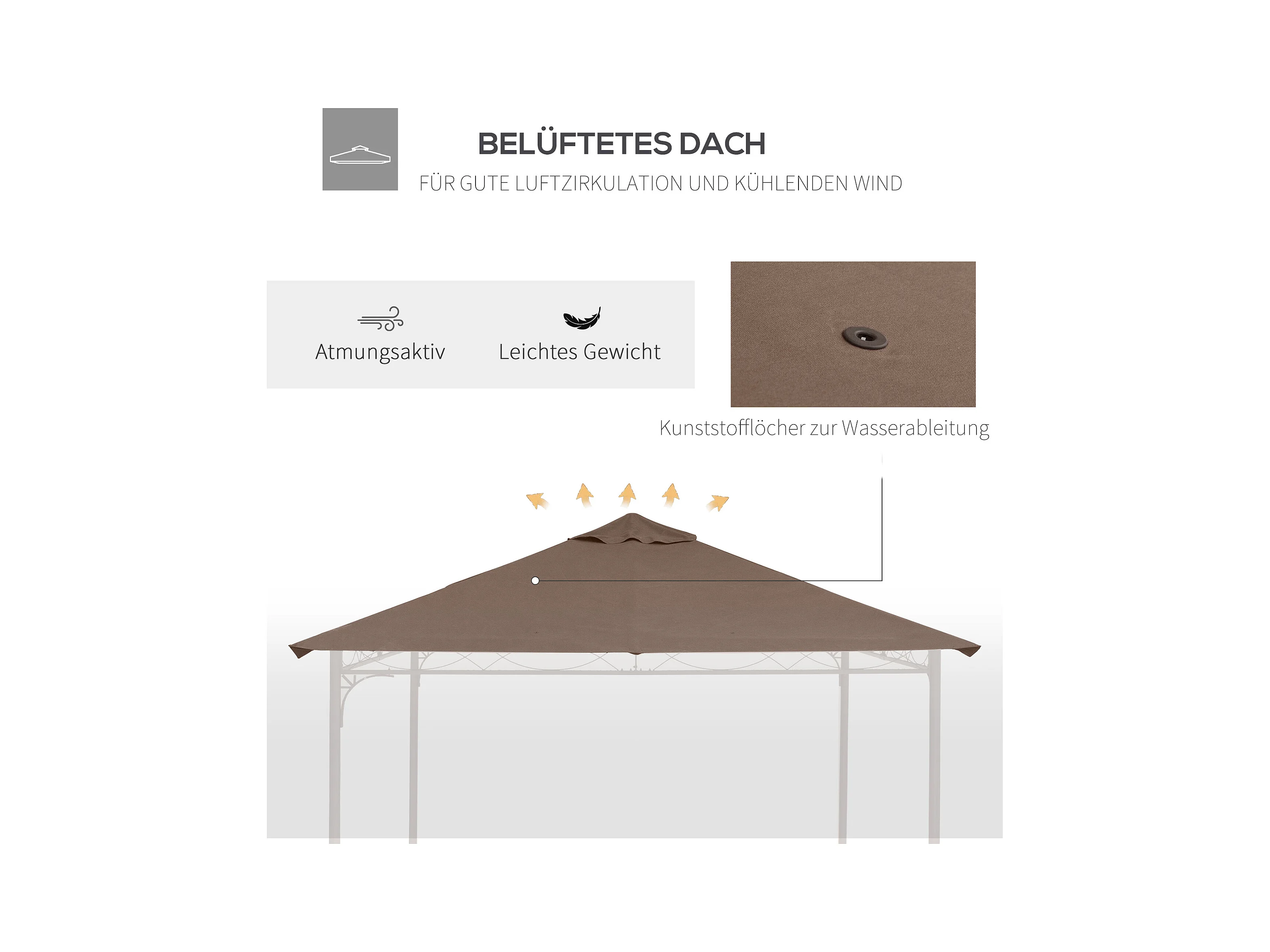 Toit de remplacement pour pavillon, protection solaire en polyester, couleur café (2,93x2,93m)