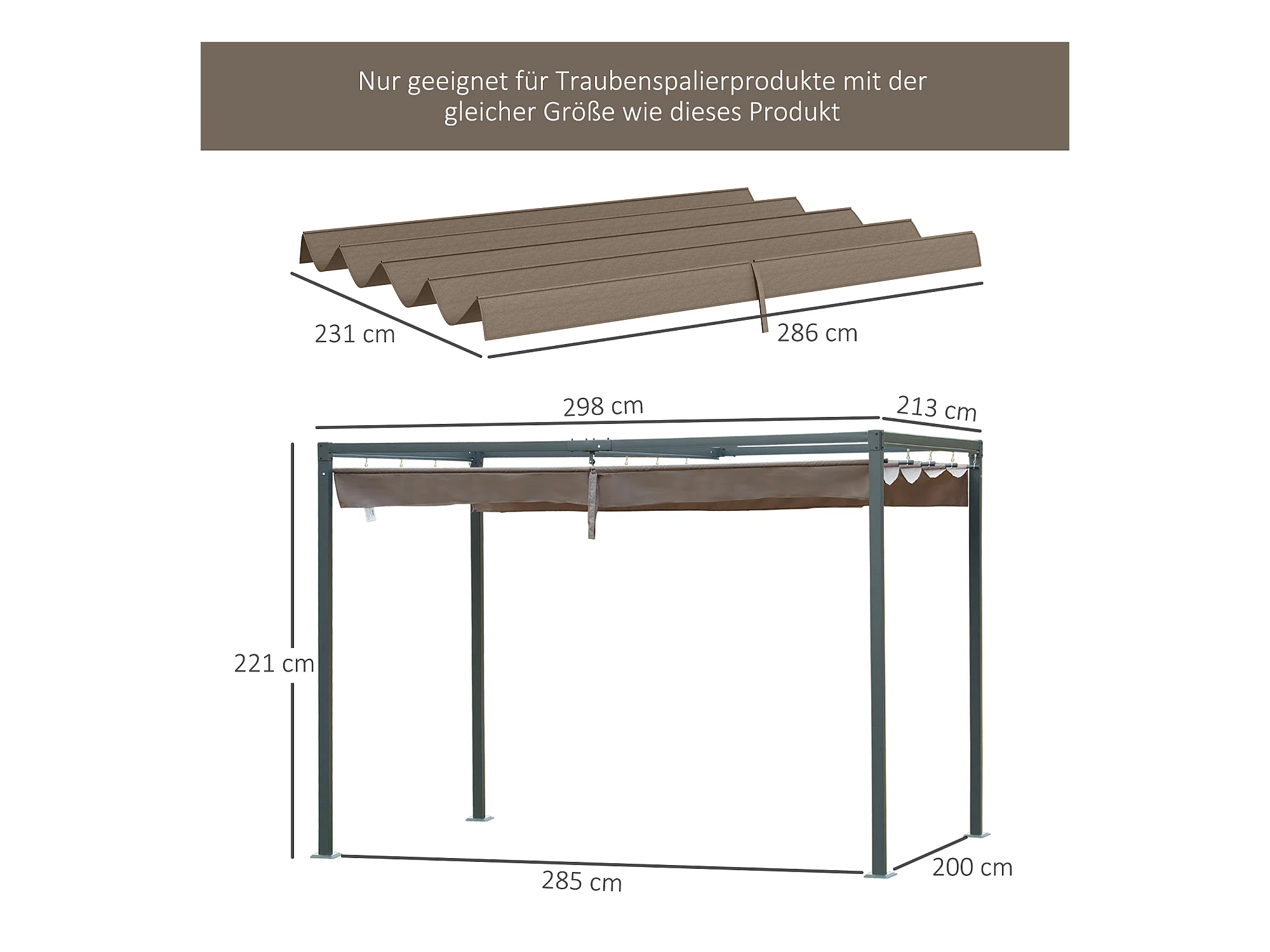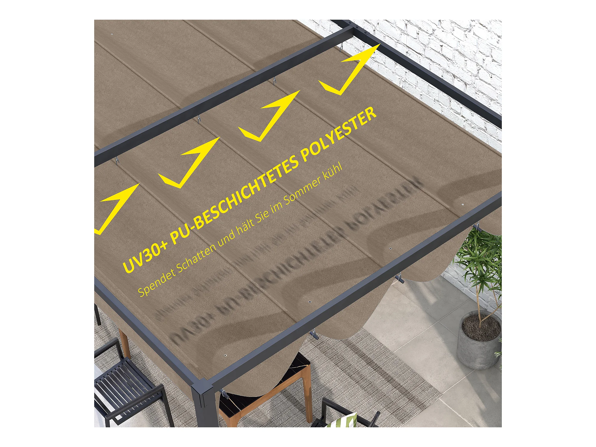 Toit de remplacement pour 2.85 x 2m Pergola, Toile de rechange, UV30 + Protection, avec 8 trous de drain de pluie - Marron