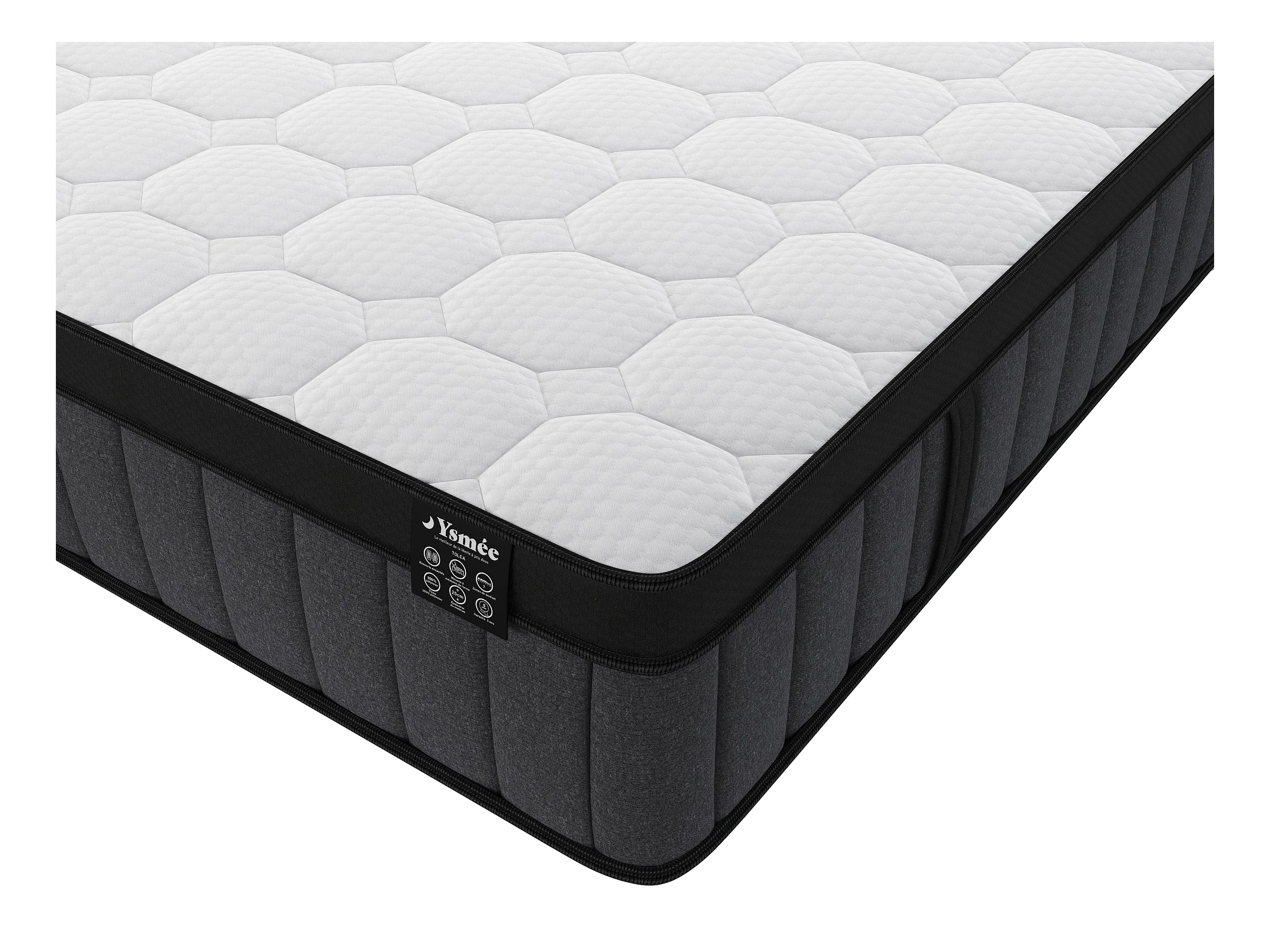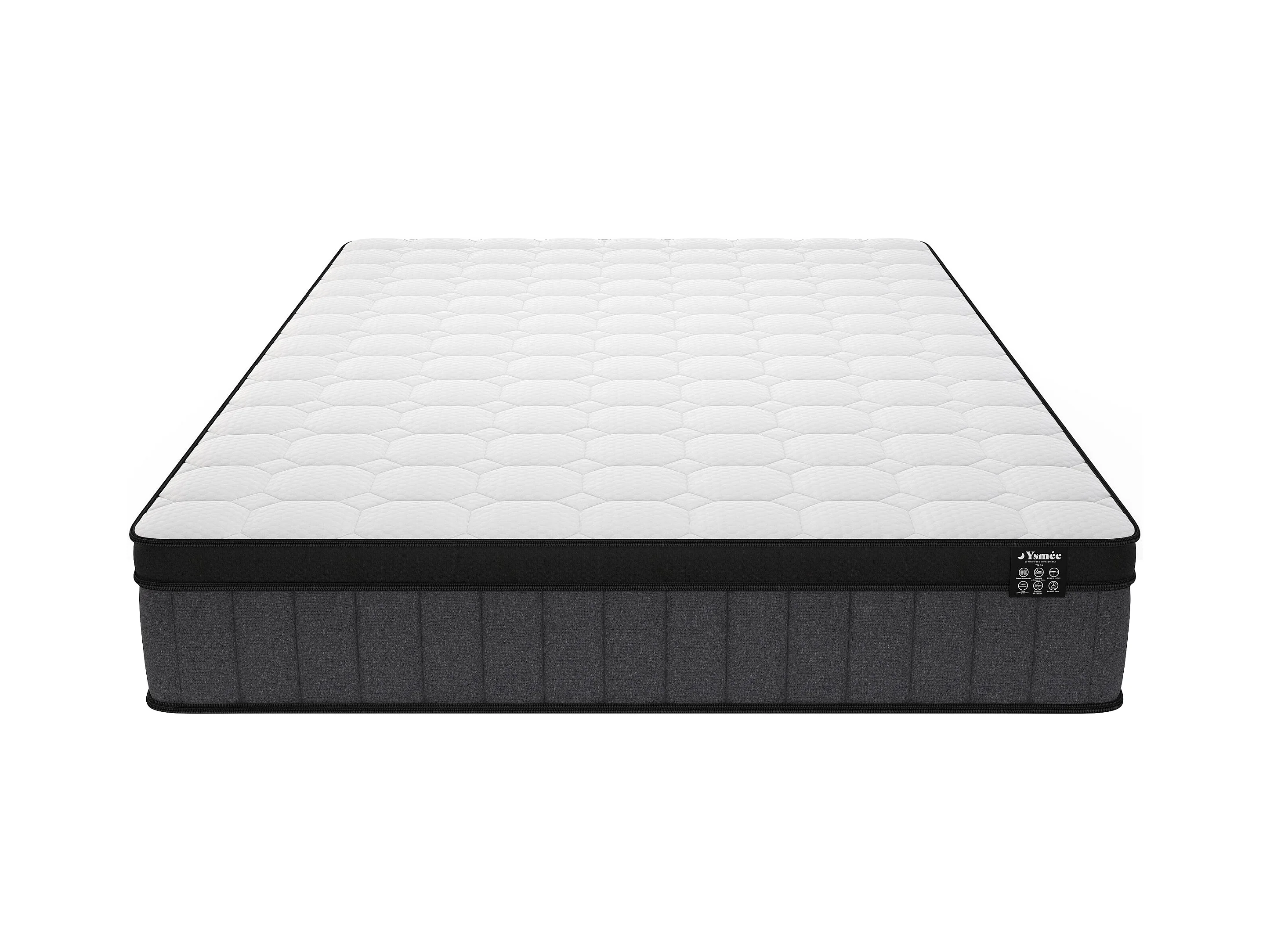 Matelas 200 x 200 cm hybride ressorts ensachés 7 zones et gel à mémoire de forme ép.25cm - TOLCA de YSMÉE