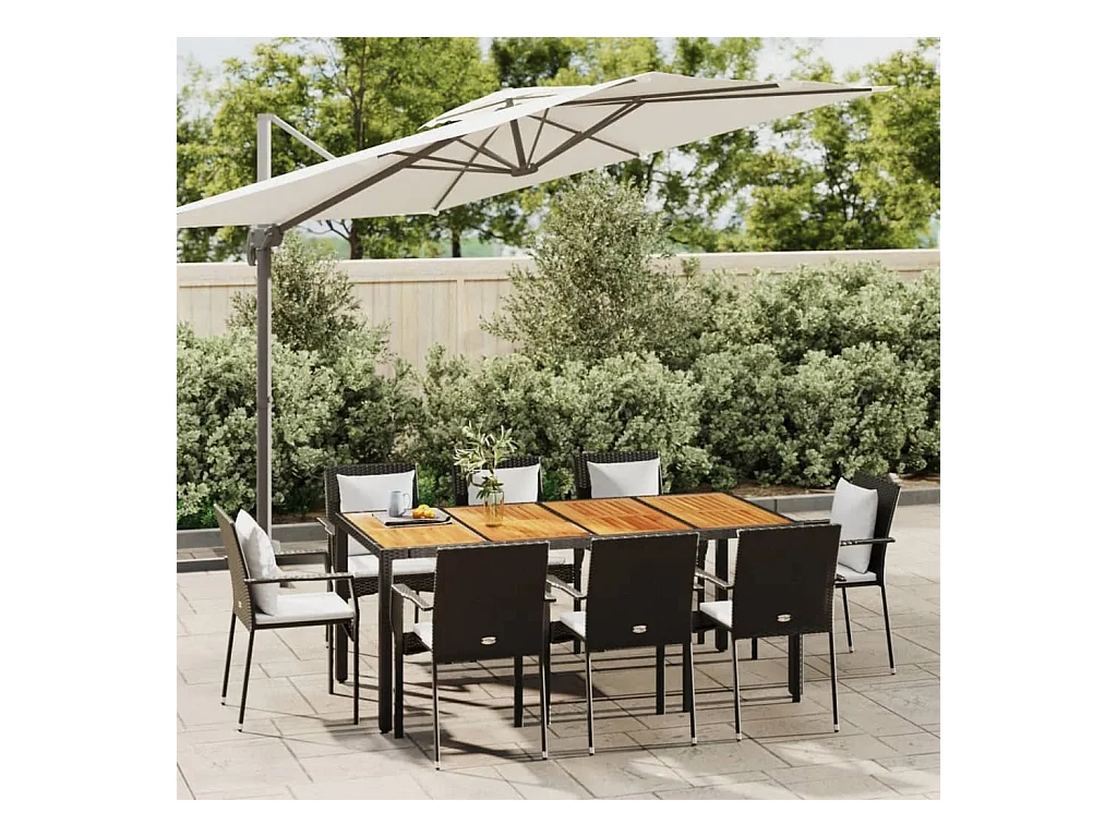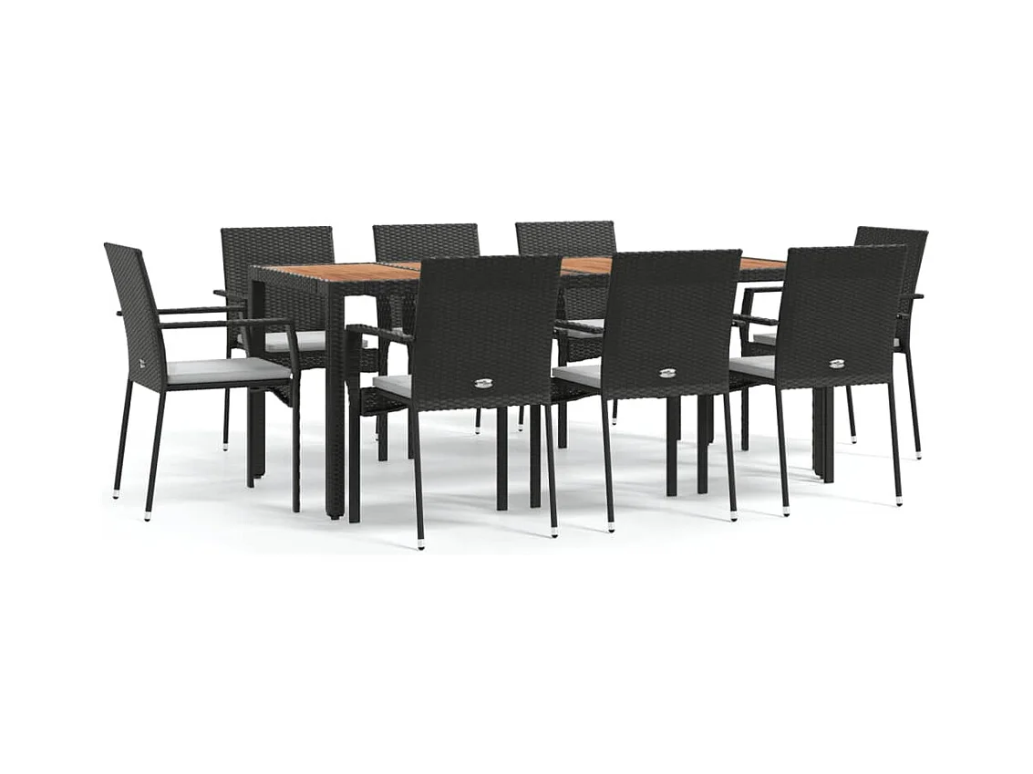 Garden Furniture - Ensemble à manger de jardin 9 pcs Noir Poly rotin et acacia