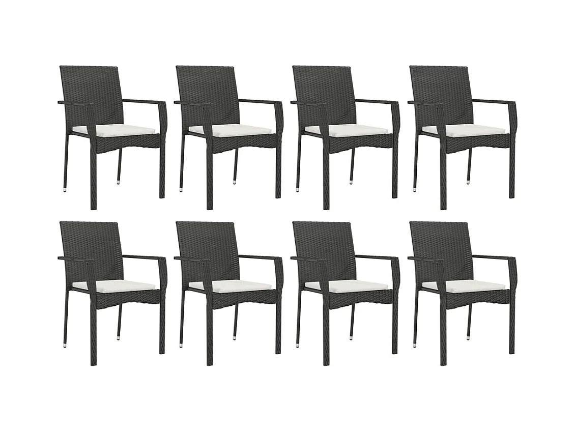 Tyron Ensemble à manger jardin 9pcs et coussins noir résine tressée