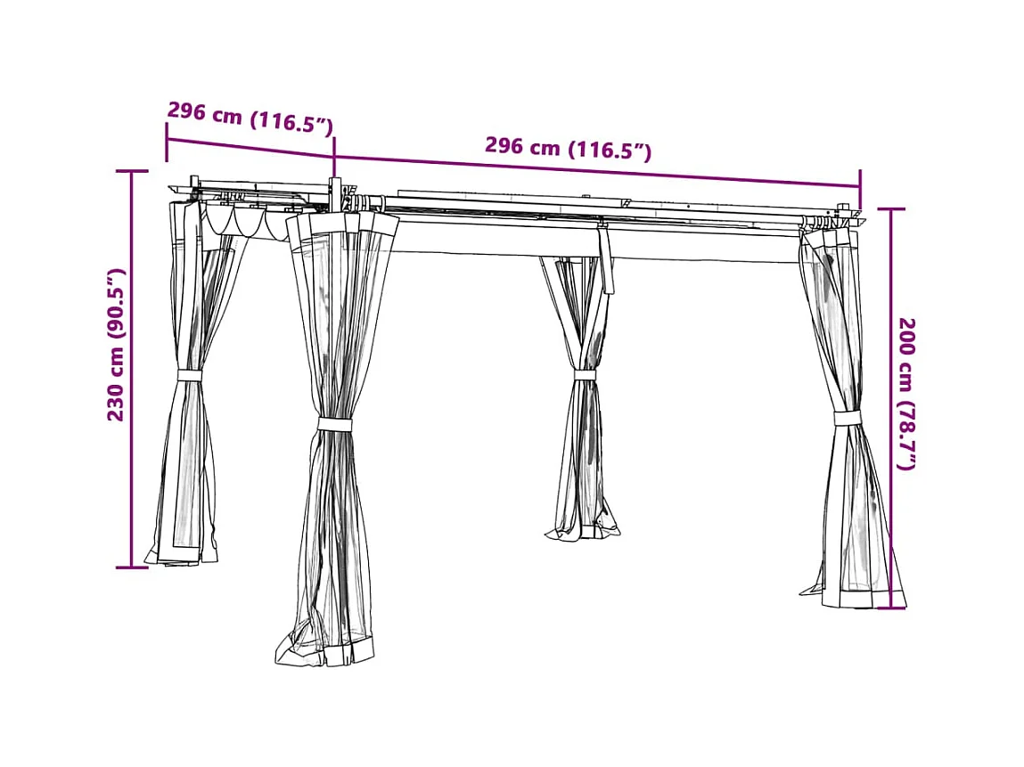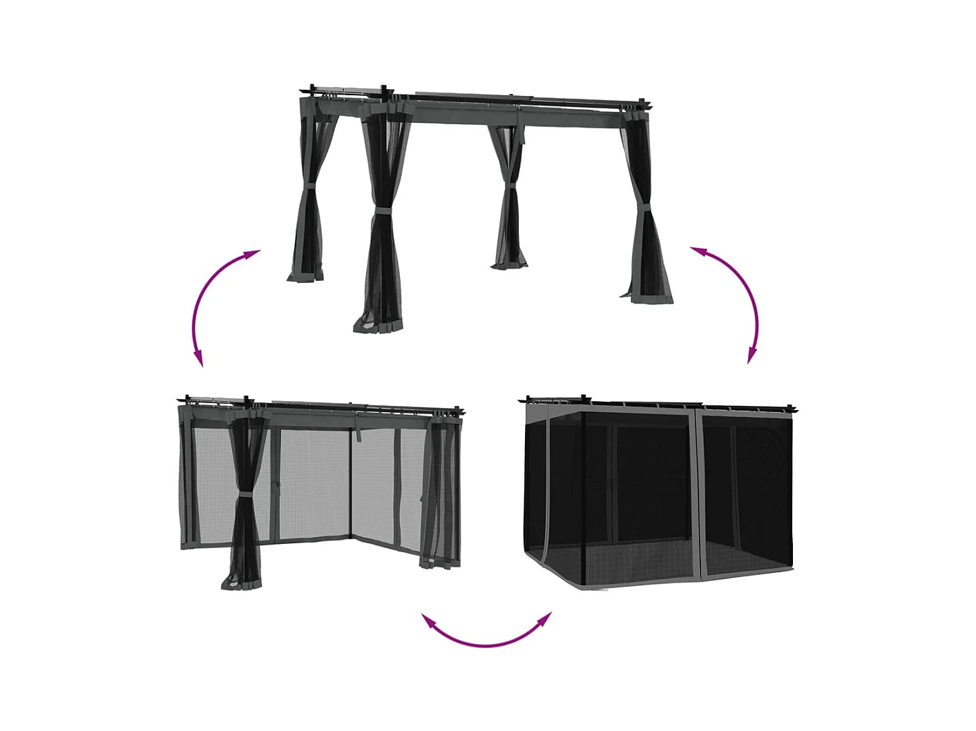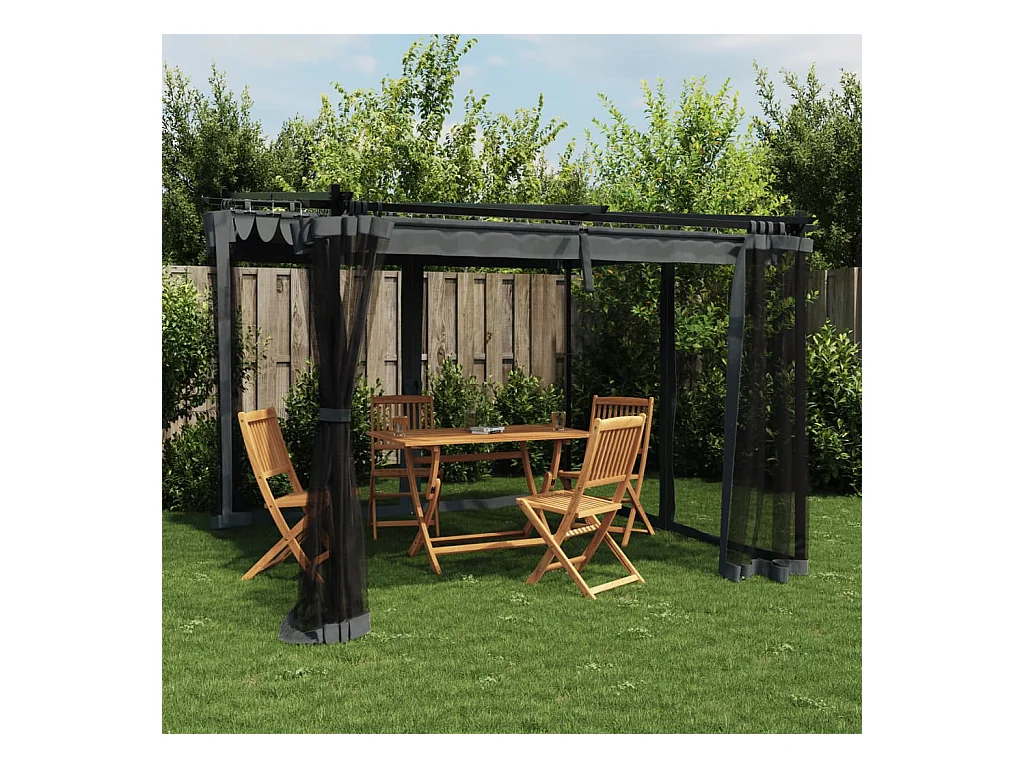 Tonnelle avec parois en filet anthracite 3x3 m acier