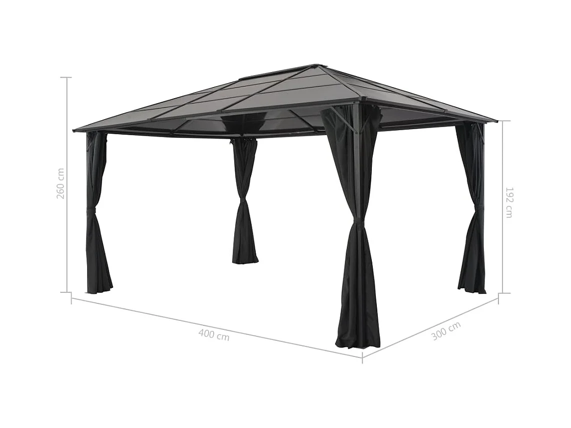 Tonnelle avec rideau Aluminium 4x3x2,6 m Noir