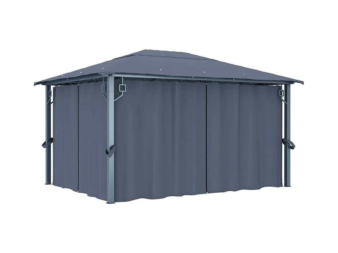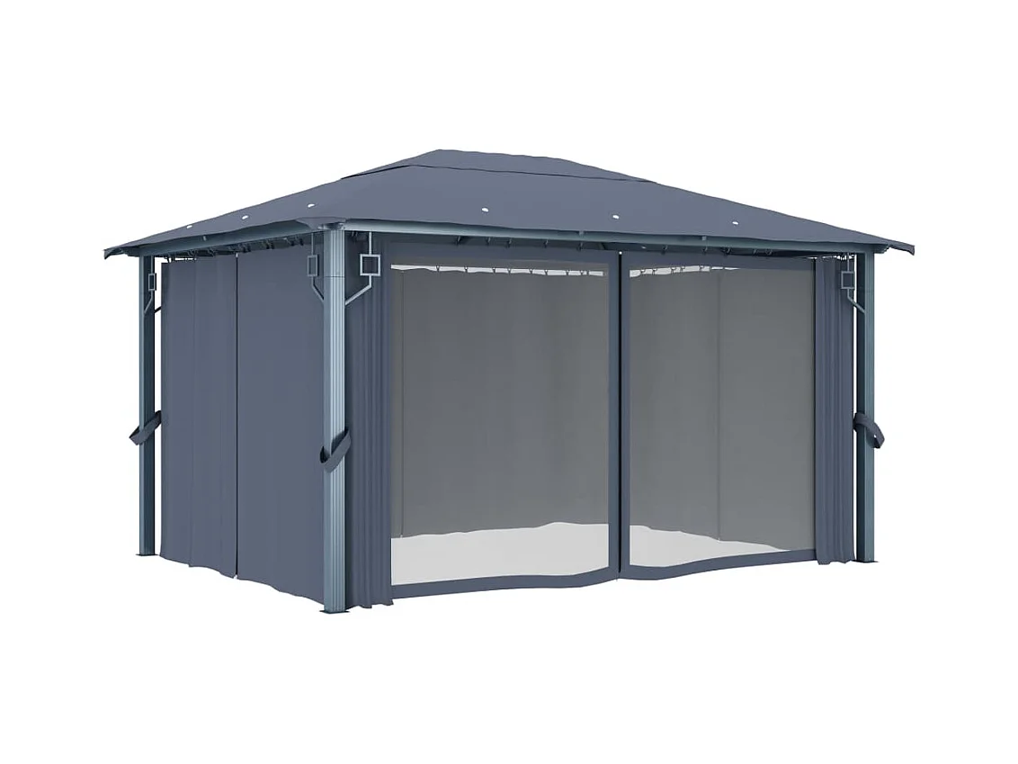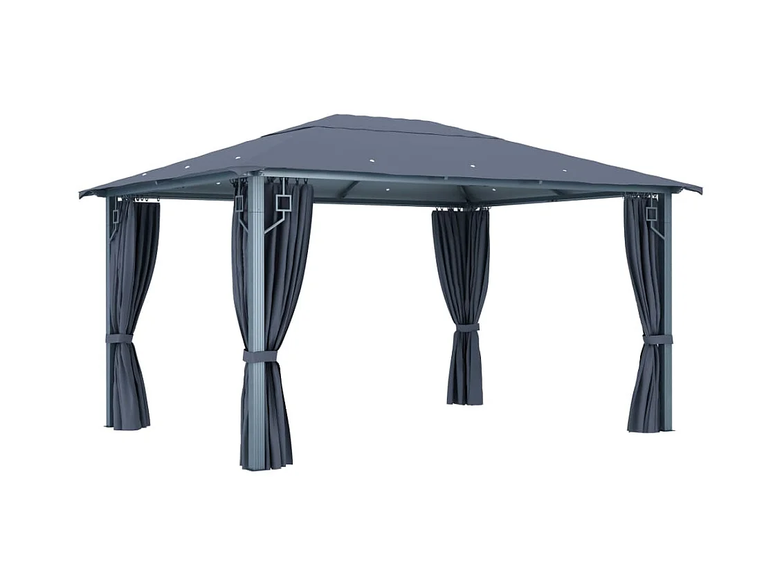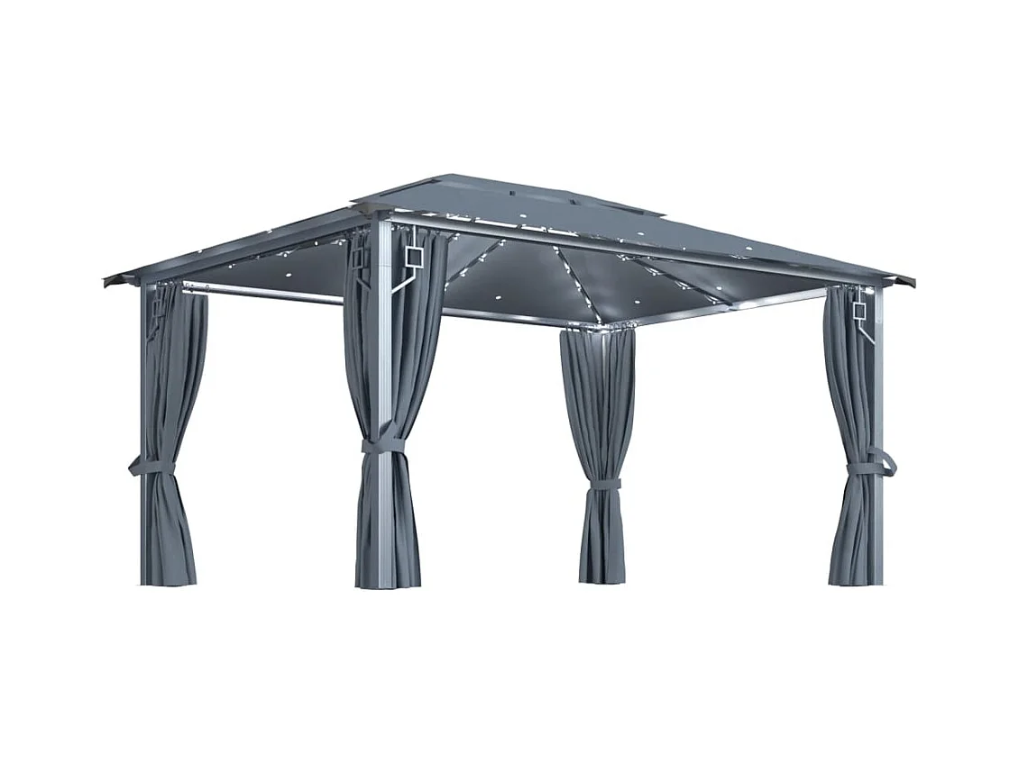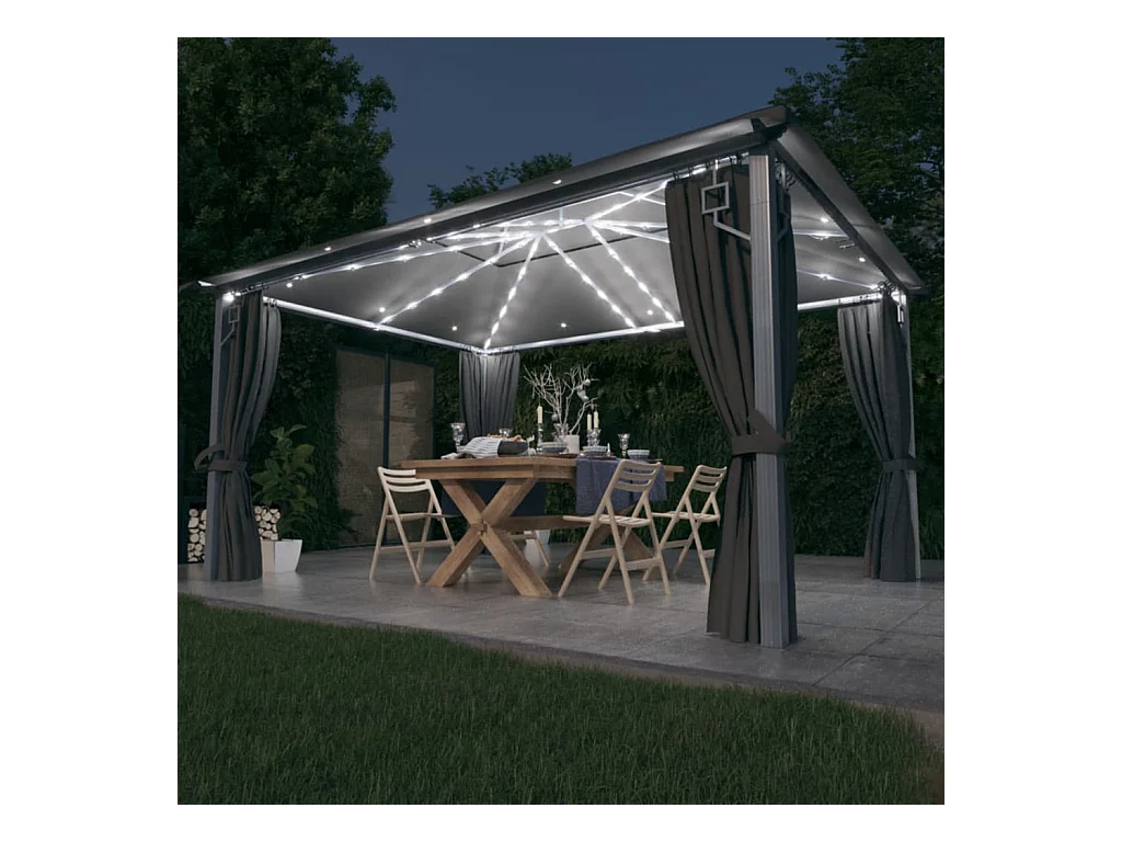 Tonnelle avec rideau et lumières LED 4x3 m Anthracite Aluminium