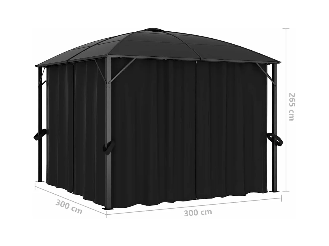 Tonnelle avec rideaux 300x300x265 cm Anthracite