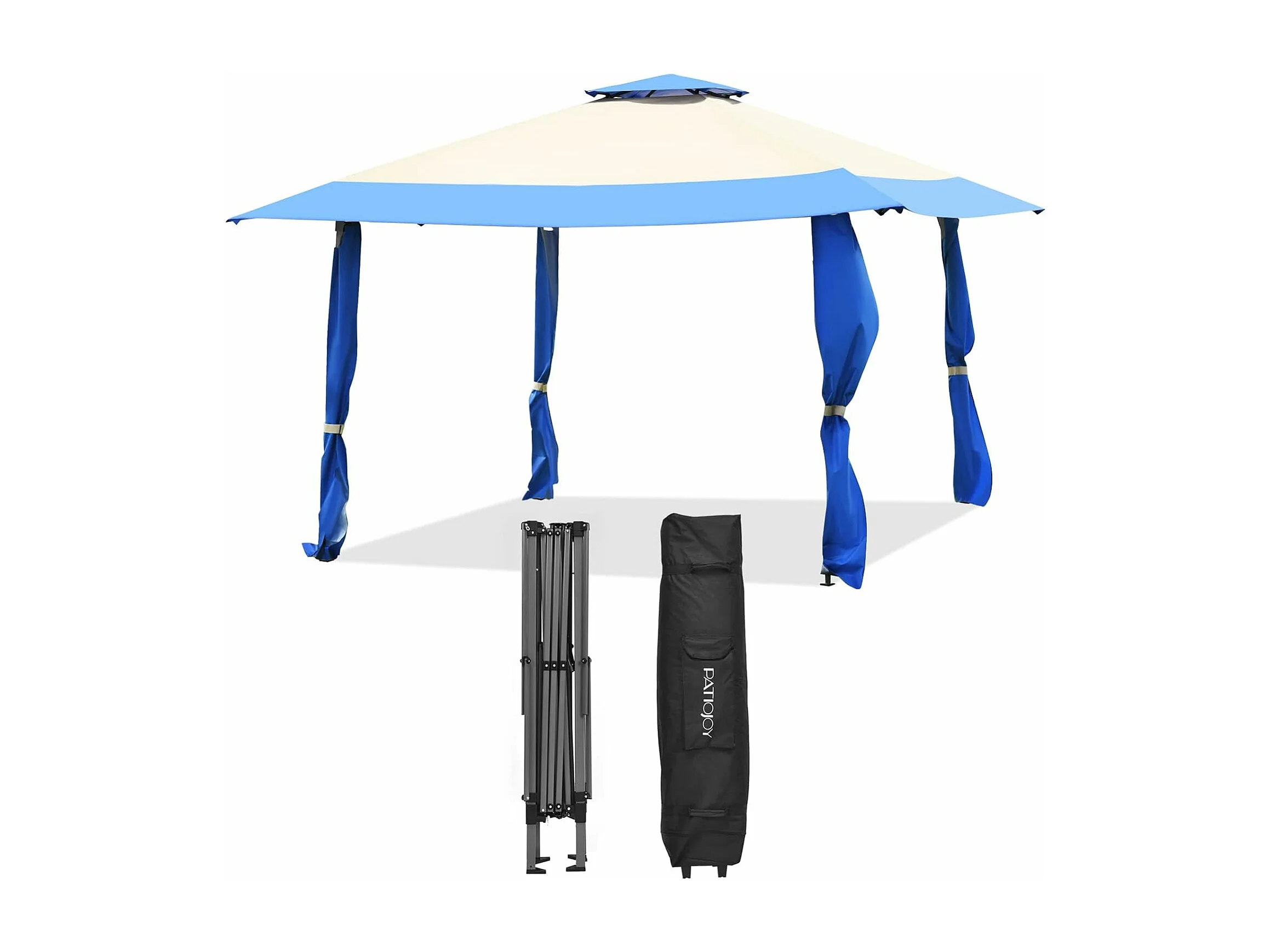 Tonnelle Barnum de Jardin Pliante Pop-up 3,95x3,95M 2 Toit Ventilés Tissu et velours Oxford 3 Hauteurs Réglable Sac de Rangement Bleu