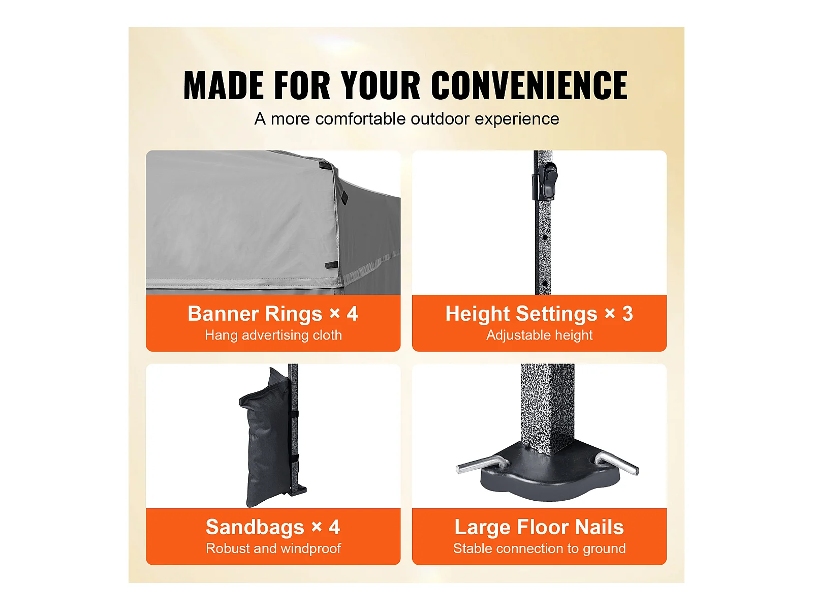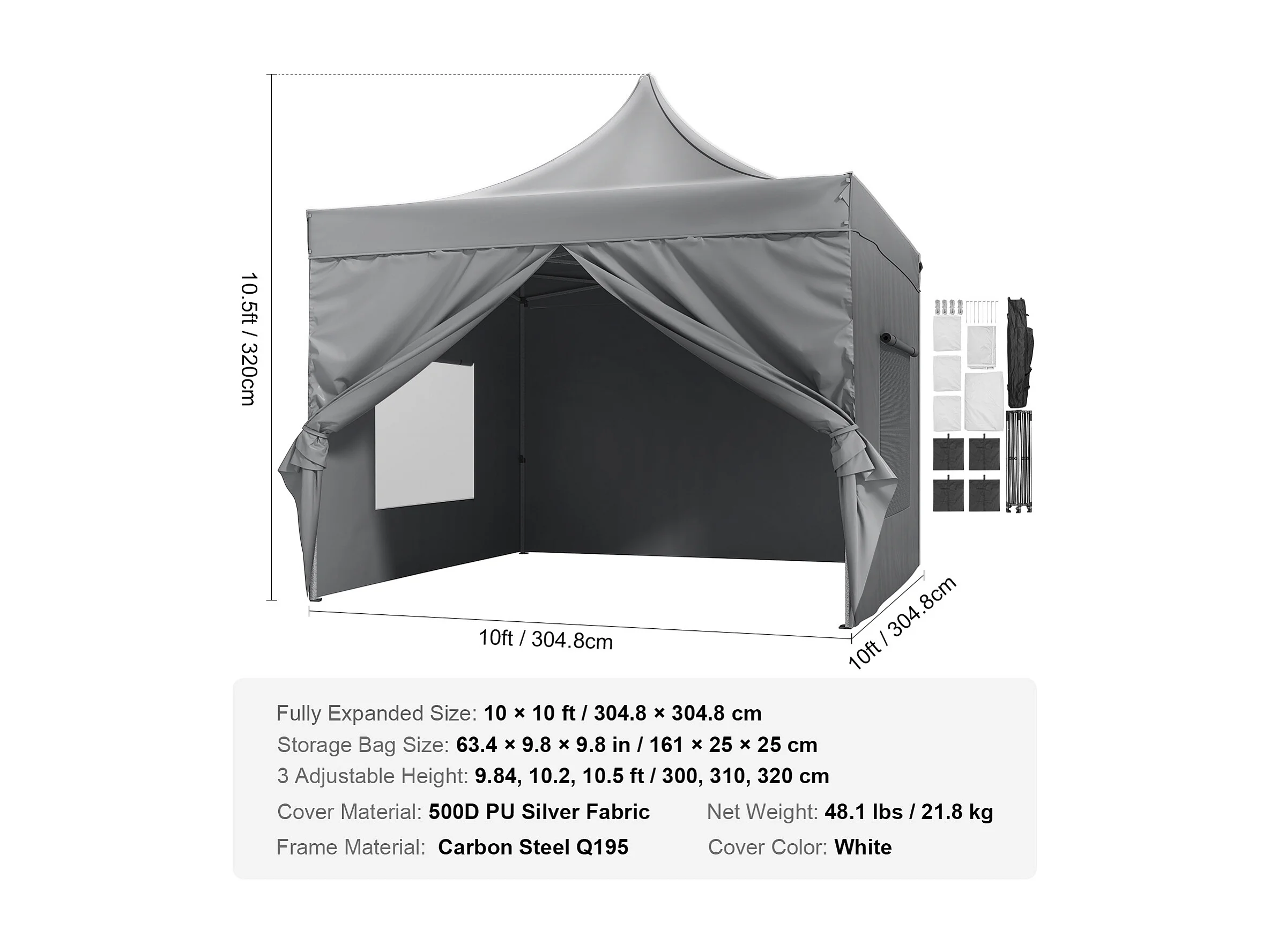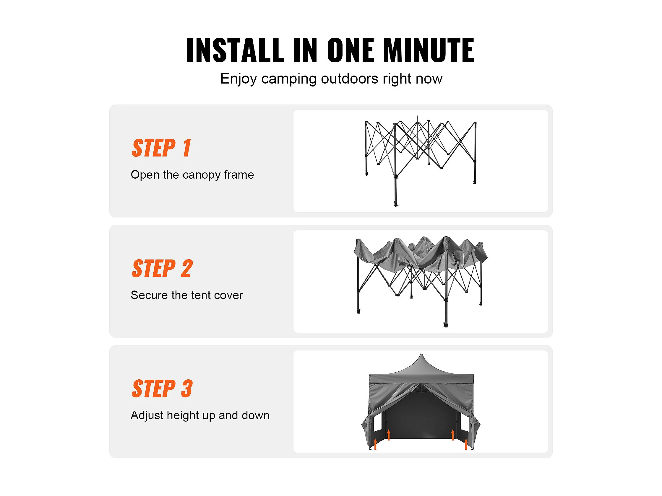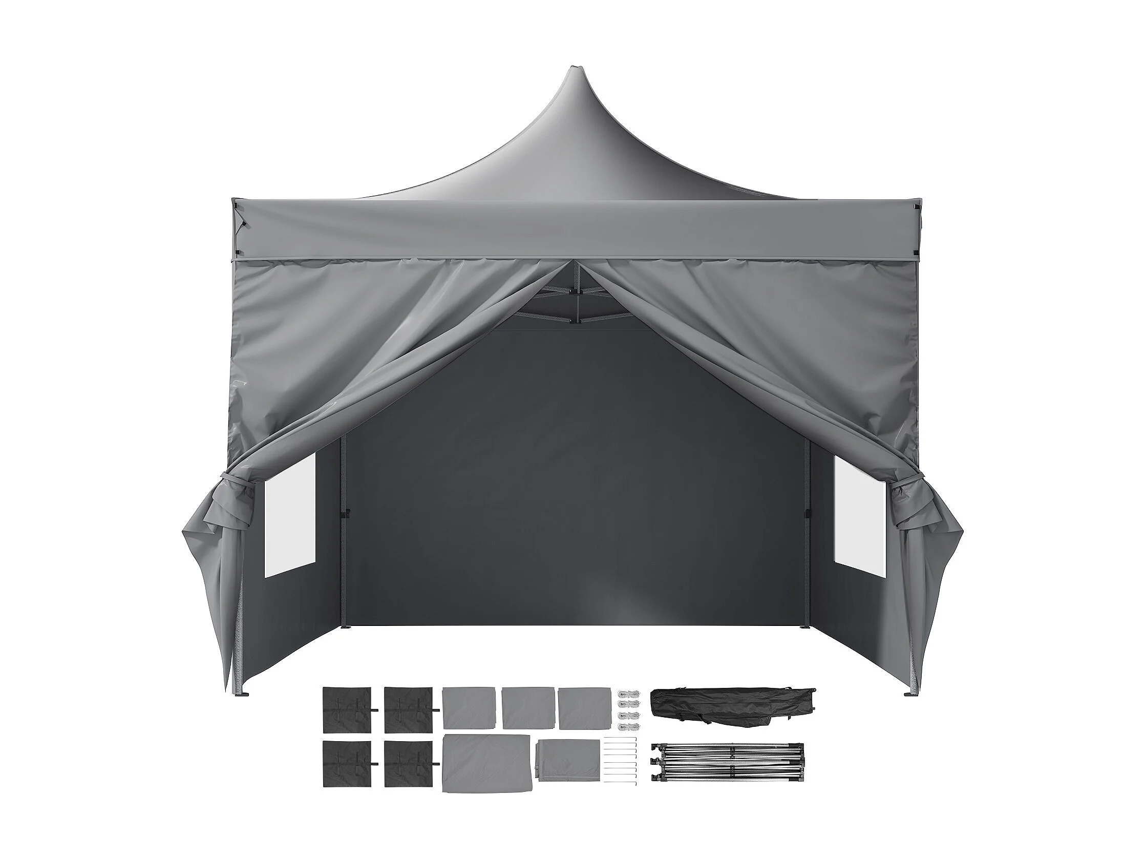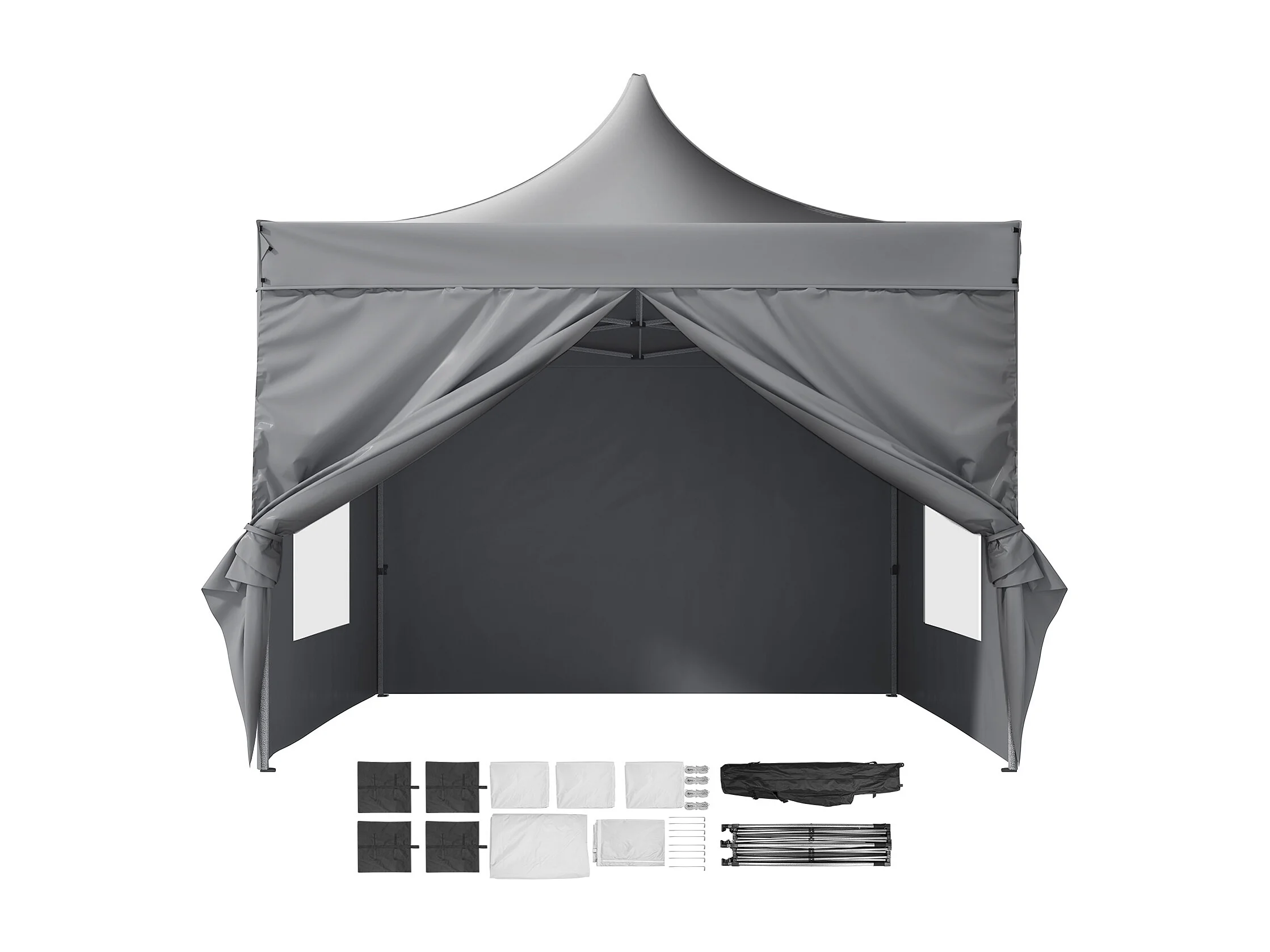 Tonnelle Barnum Pop-up, SucceBuy Tente à Baldaquin Escamotable 304.8x304.8 CM avec Parois Latérales pour une Utilisation en Extérieur Gris Foncé