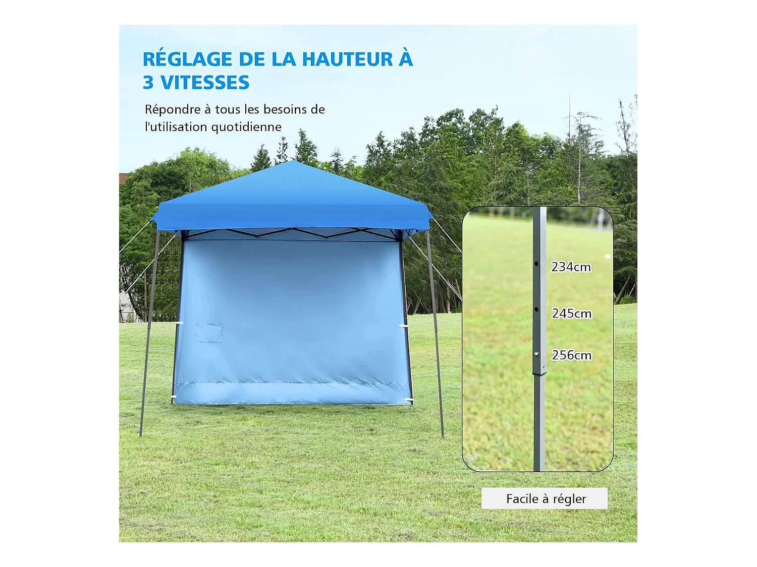 Tonnelle de Jardin 3x3m Pliable-Hauteur Réglable avec Parois Latérales Amovibles et Sac à Dos à roulettes- Auvent pour CamBoisg, Festival, Plage, Bleu