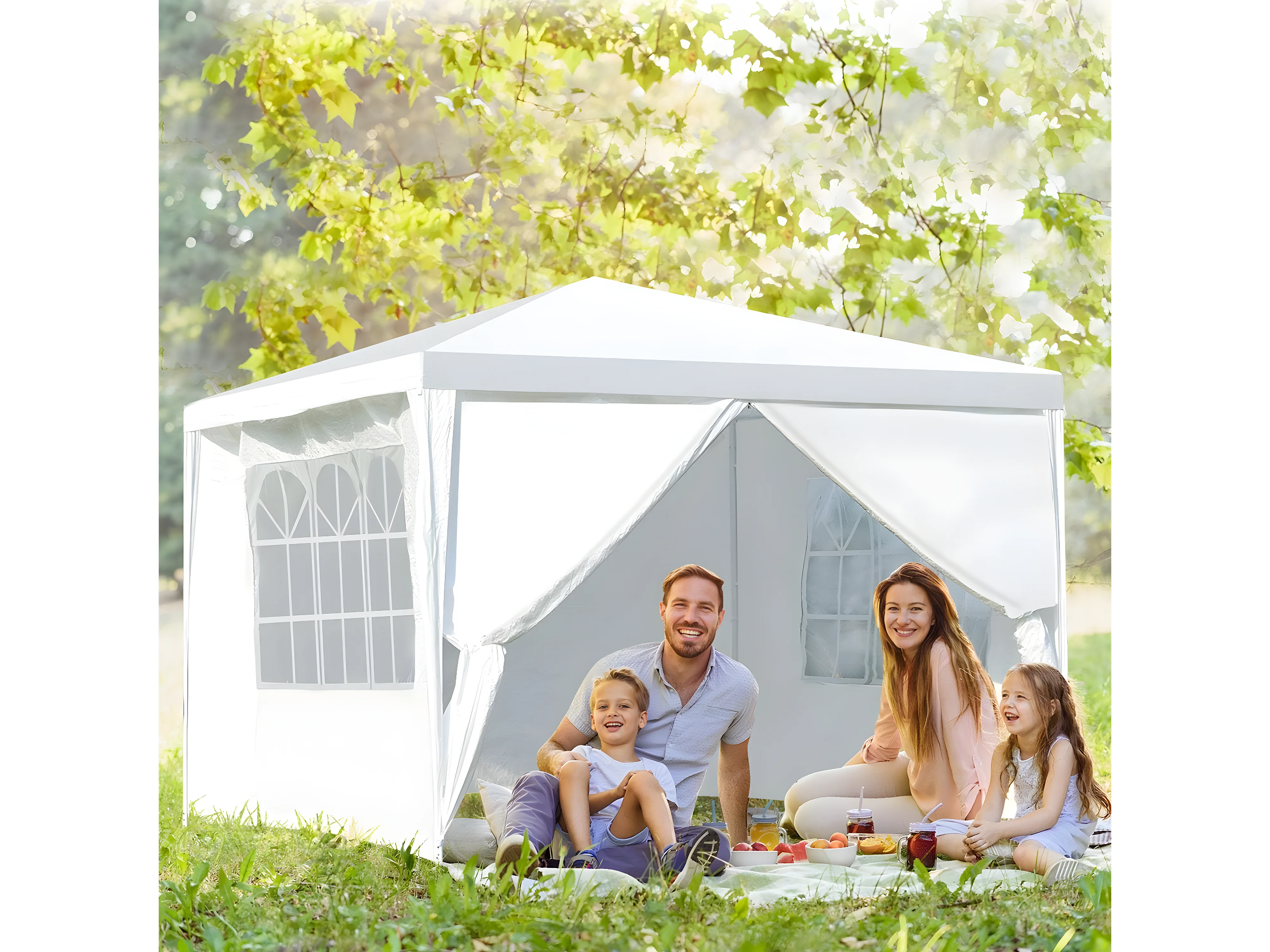 Tonnelle de Jardin 3x3M, Tente de Reception avec 4 Bâches Amovibles et Fenêtres Transparentes, Tubes Métalliques, Barnum pour Fête, Mariage, BBQ