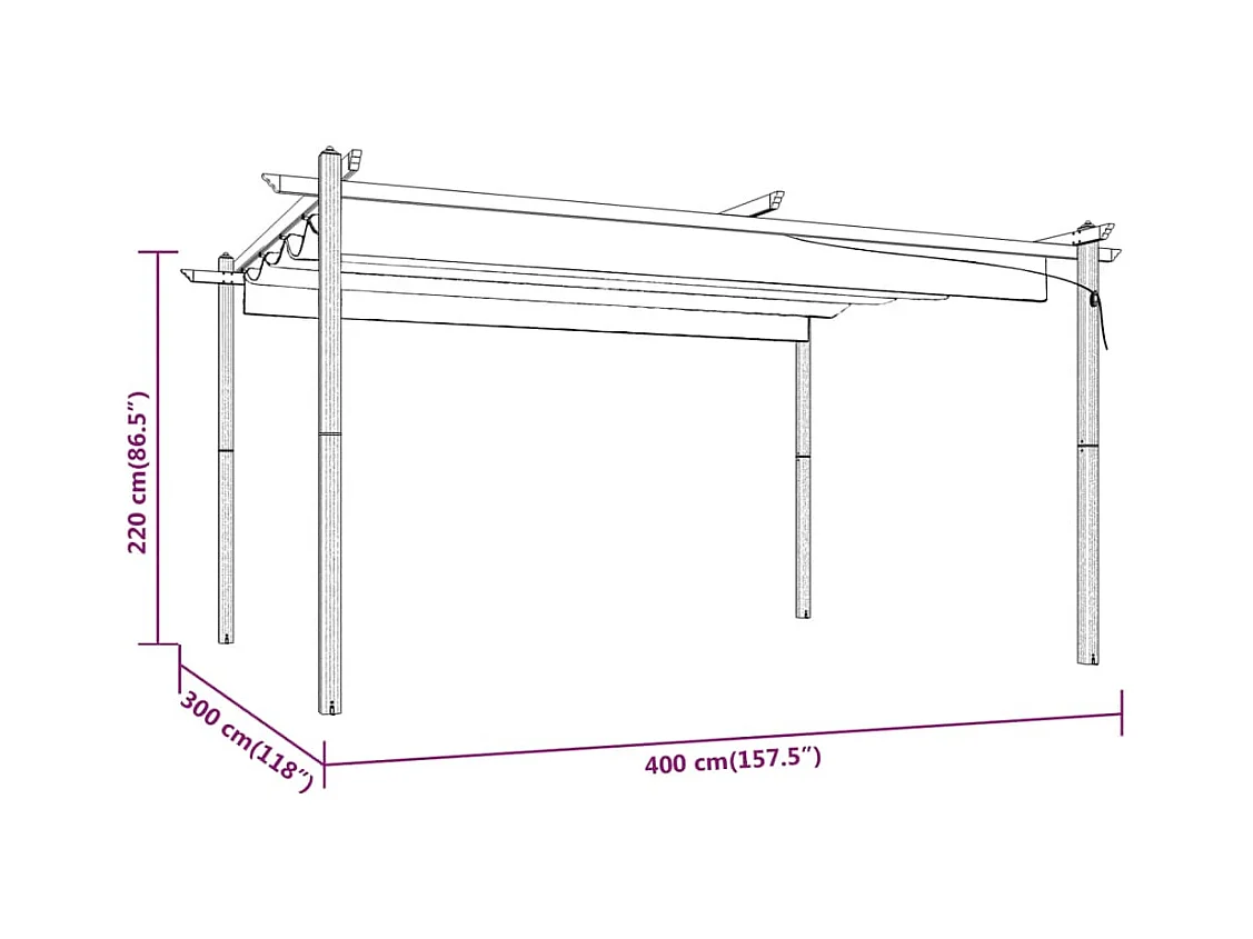 Tonnelle de jardin avec toit rétractable 4x3 m Anthracite