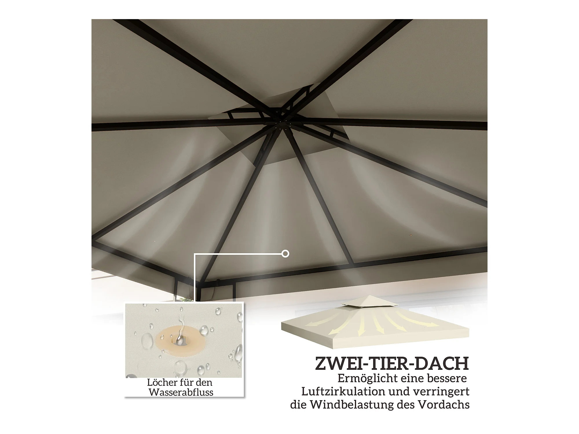 Toit de remplacement pour pavillon métallique, polyester respirant, crème (400x300x20cm)