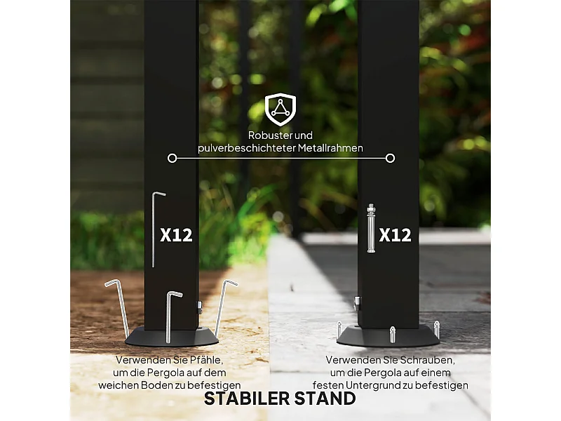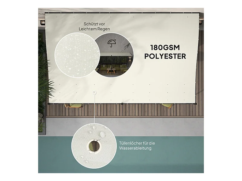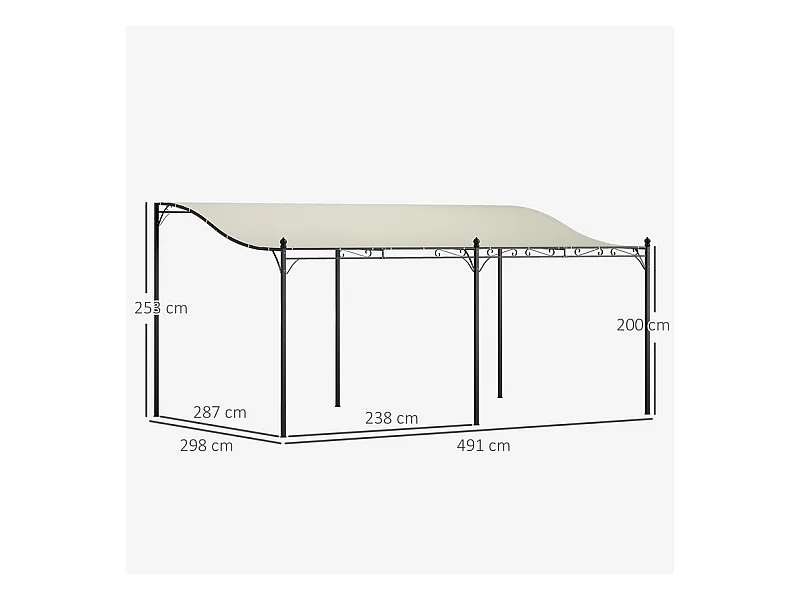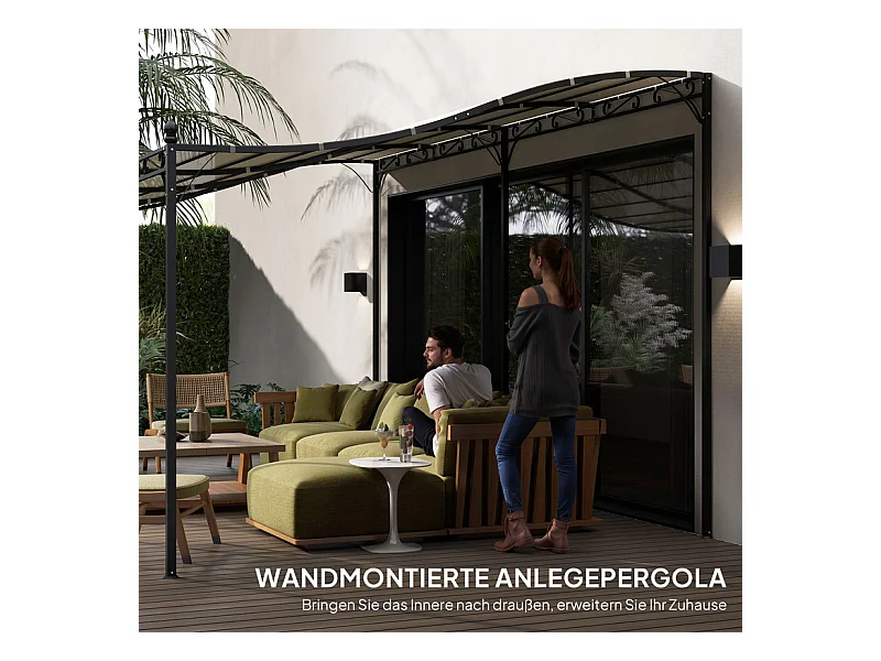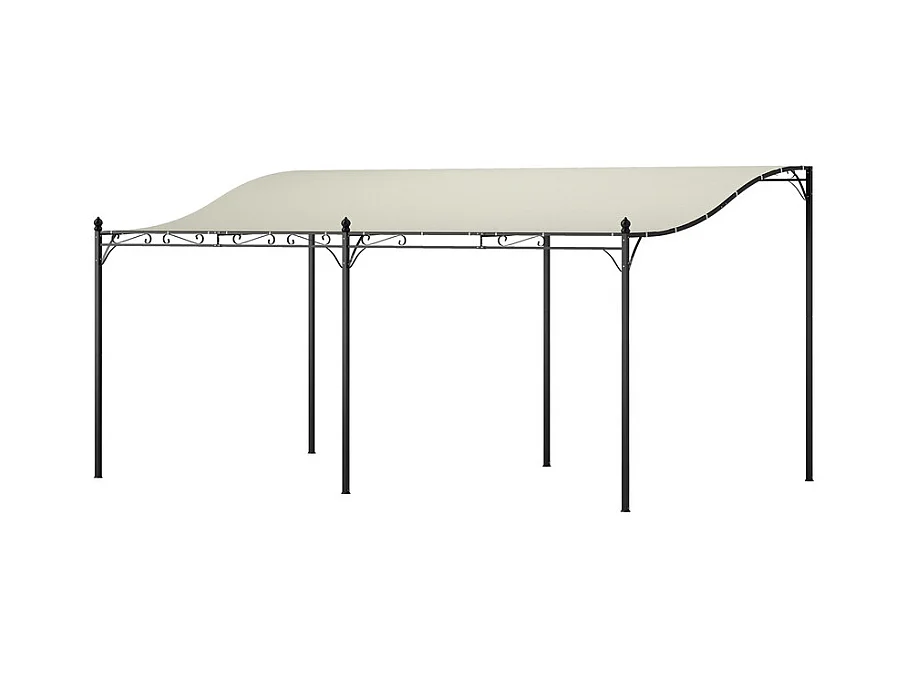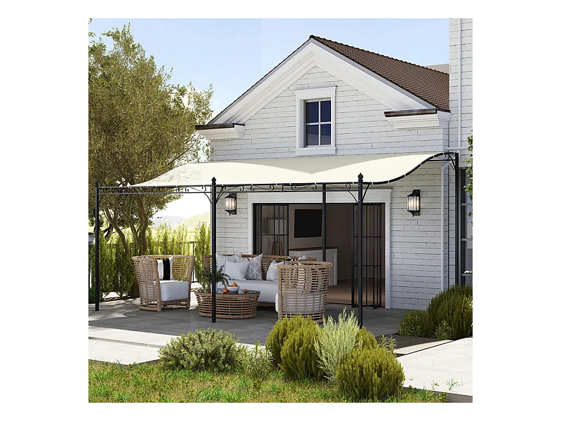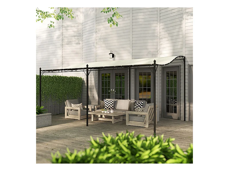 Tonnelle/Pergola mural en métal 3 x 5 x 2,5 m, avec toile polyester haute densité 180 g/m² et 32 trous de drainage