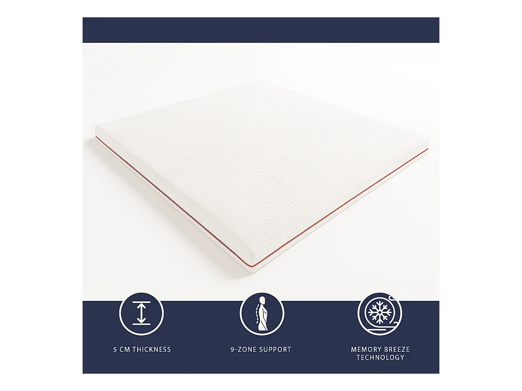Topper une place et demie 120 X 190 mousse mémoire 9 zones | Hauteur 5 cm | Anti-allergique