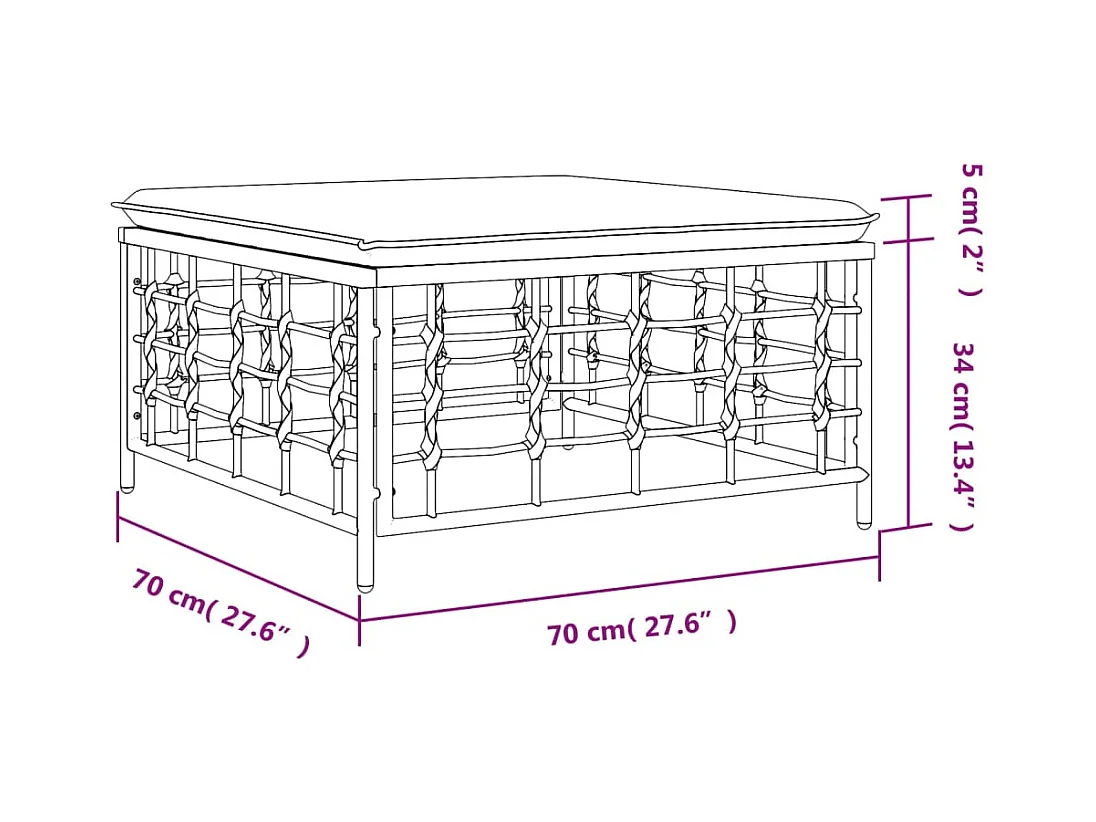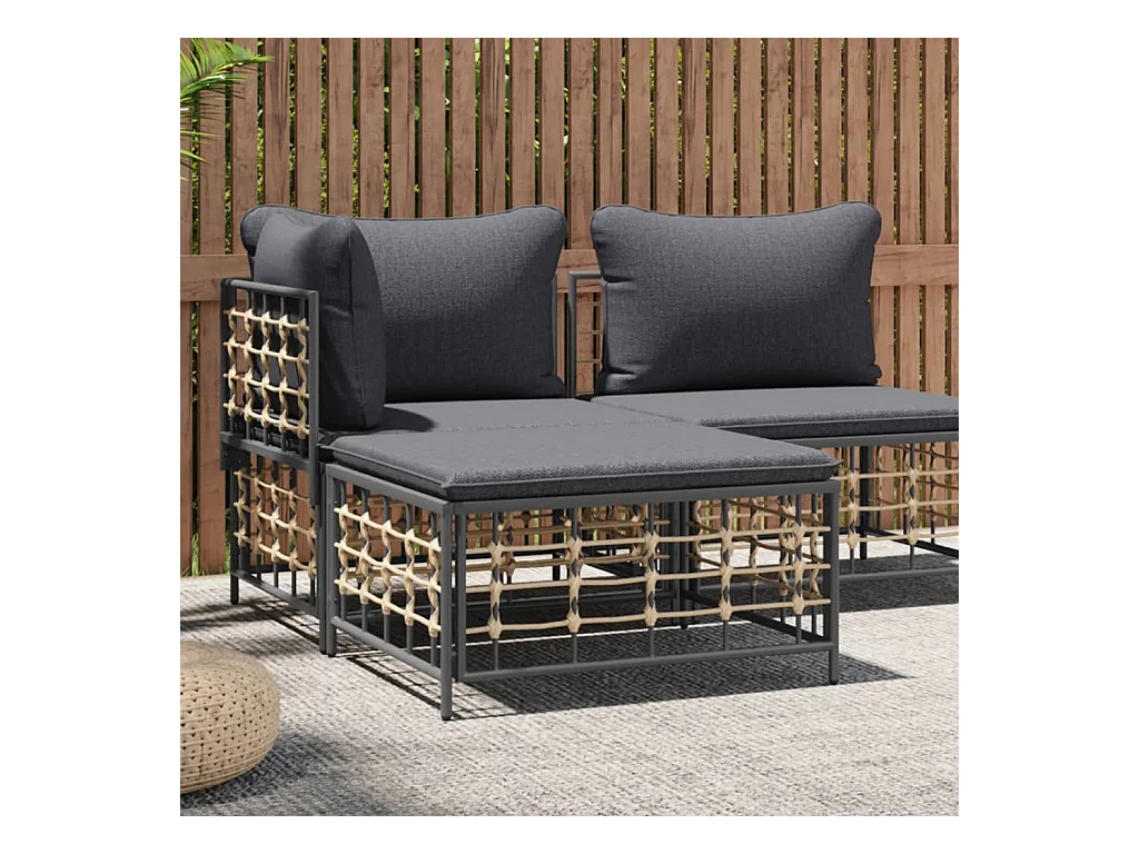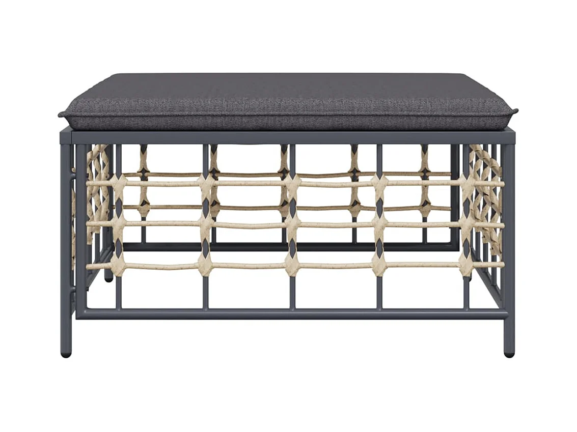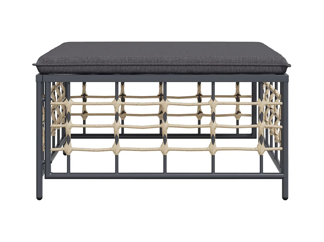 Layla Hope Repose-pied de jardin et coussin Gris 70x70x30cm Résine tressée