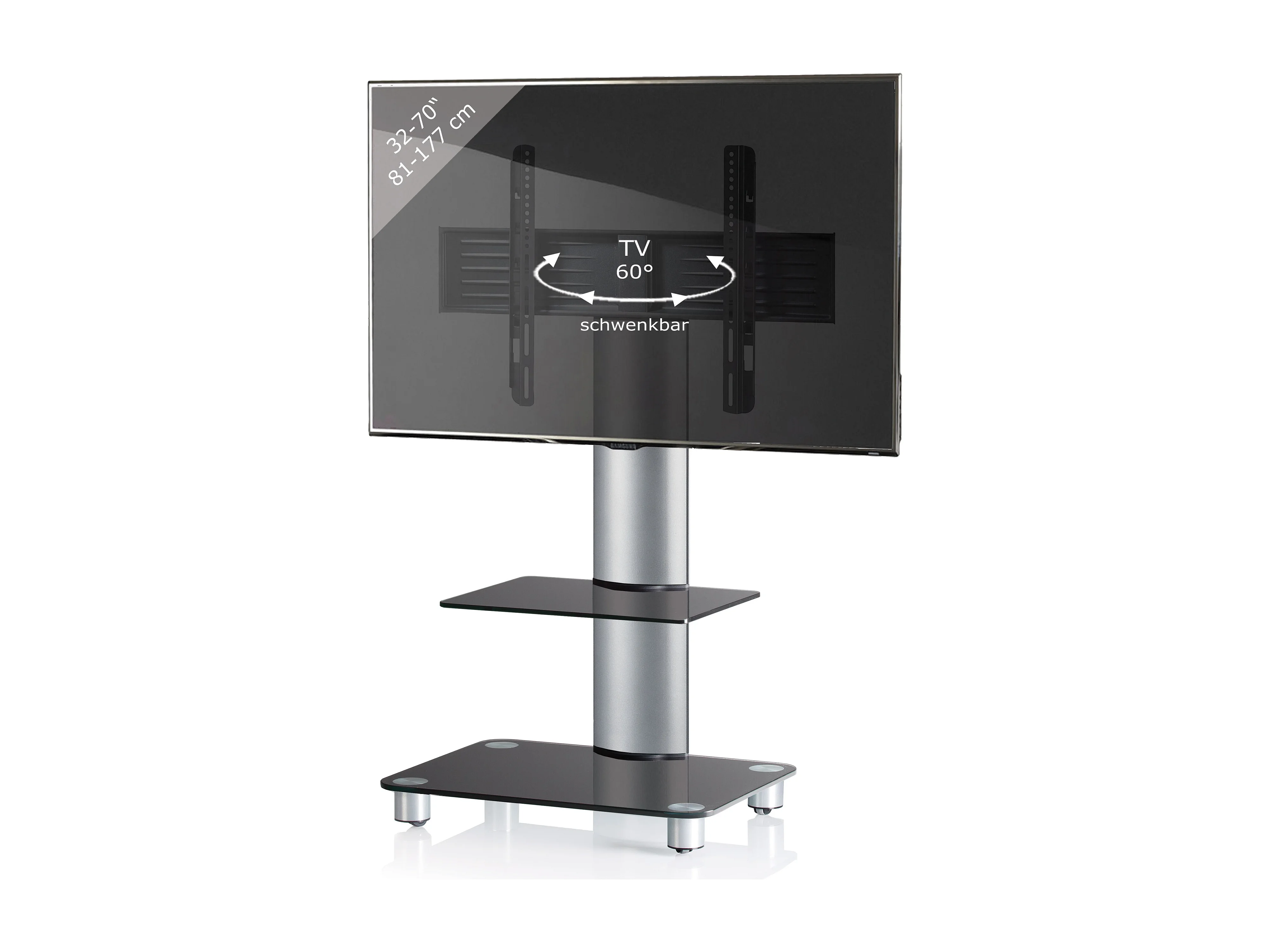 TV stand feet Tosal Black glass H. 100 x W. 60 x D. x 44 cm