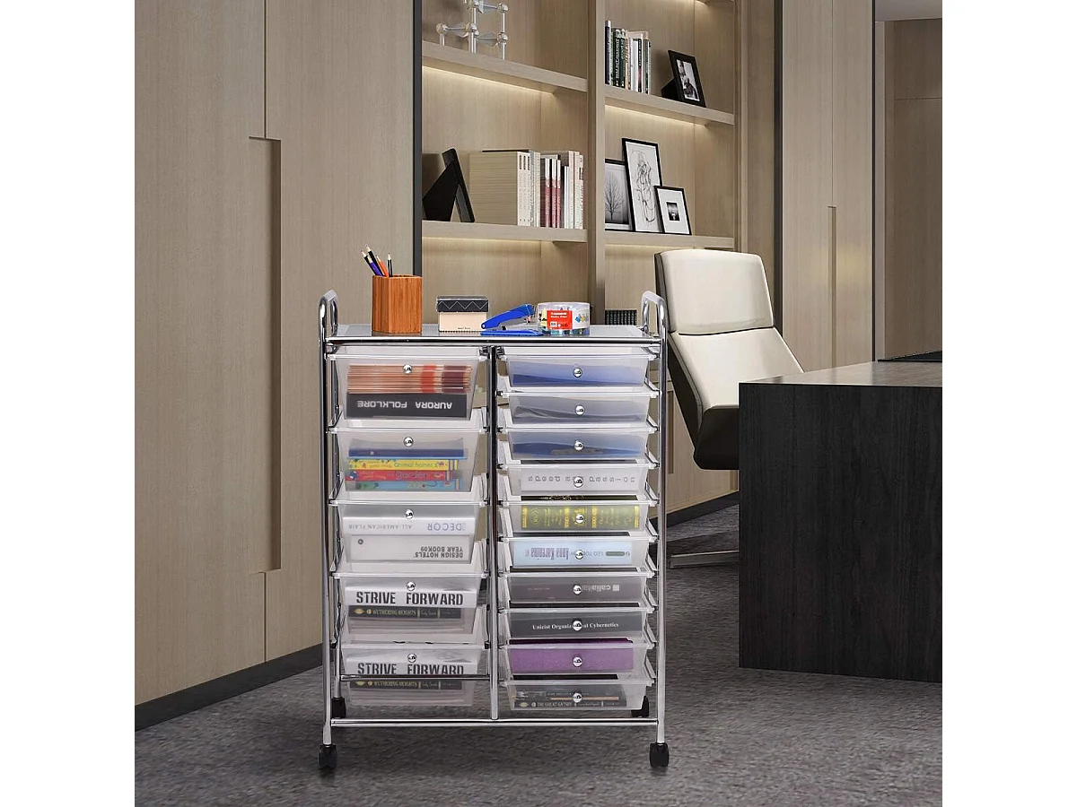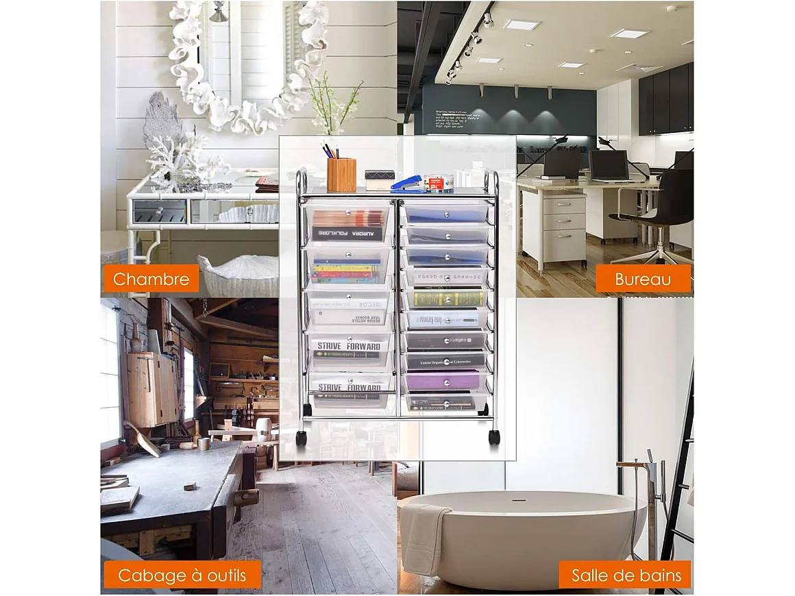 Tour de Rangement, Desserte à roulettes avec 15 Tiroirs Multicolores, Conception Stable et Solide, 4 roulettes Universelles 2 avec Freins