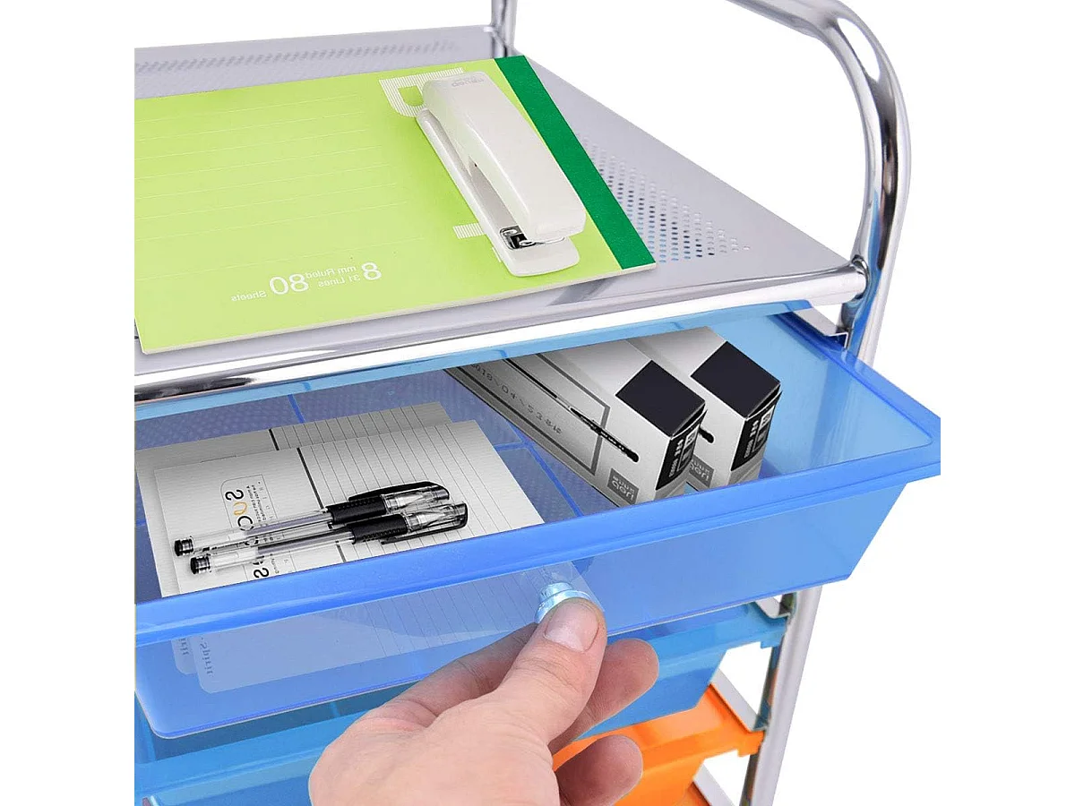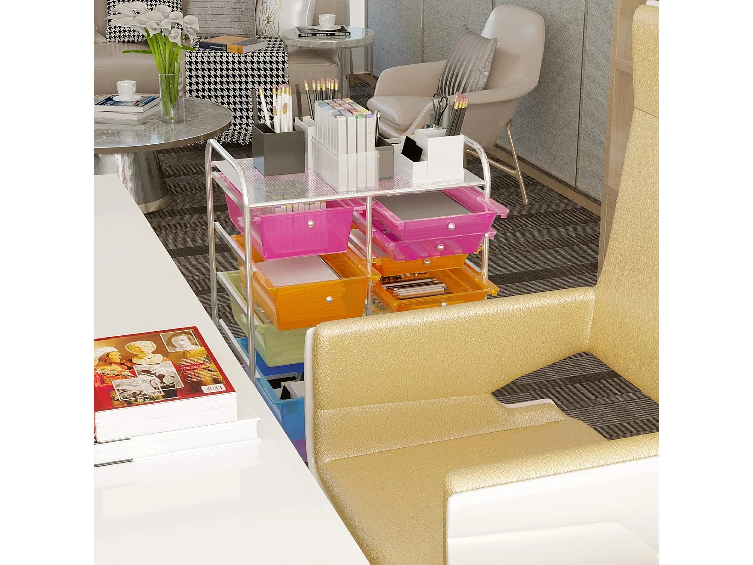 Tour de Rangement, Desserte à roulettes avec 15 Tiroirs Multicolores, Conception Stable et Solide, 4 roulettes Universelles 2 avec Freins