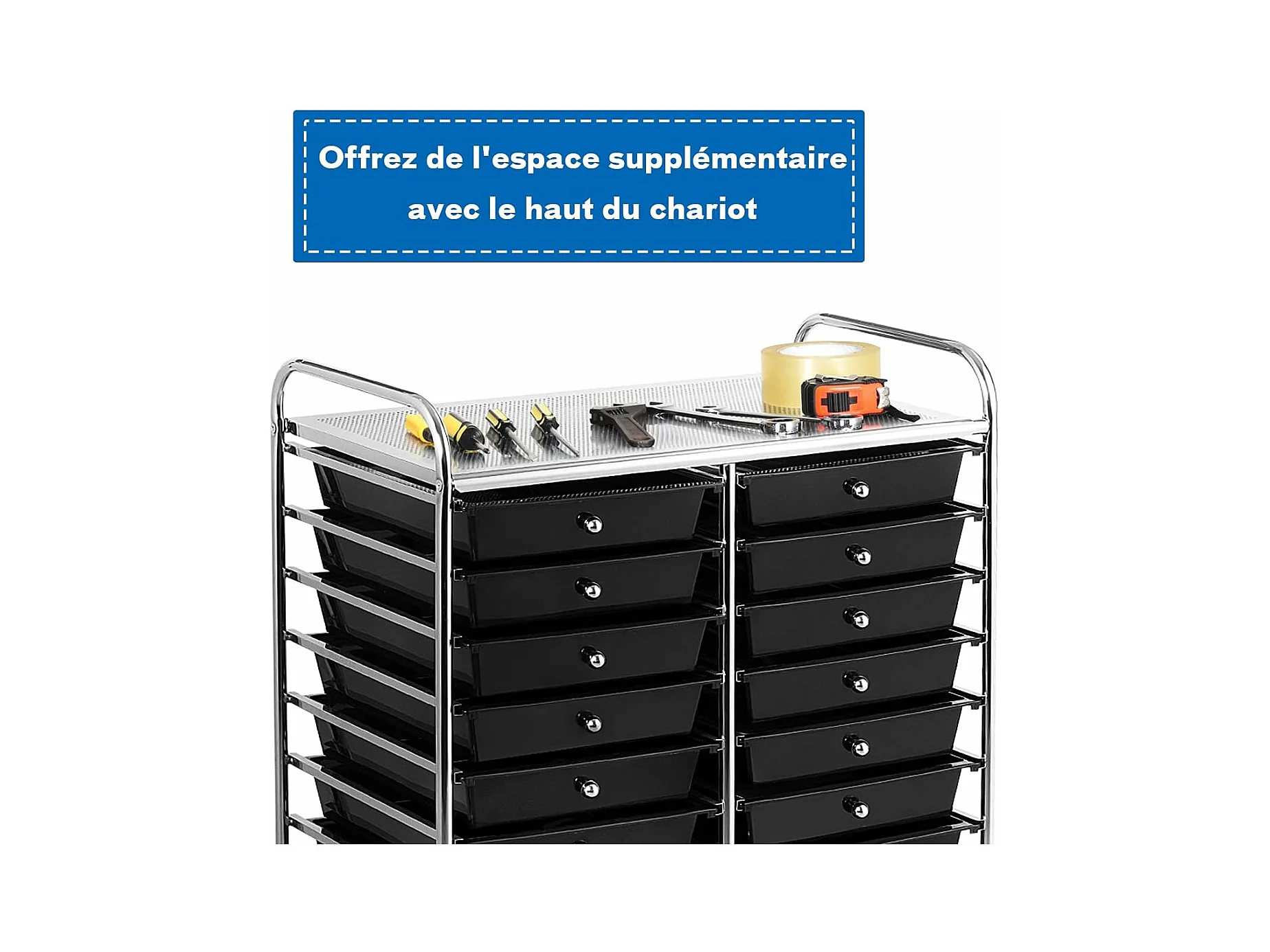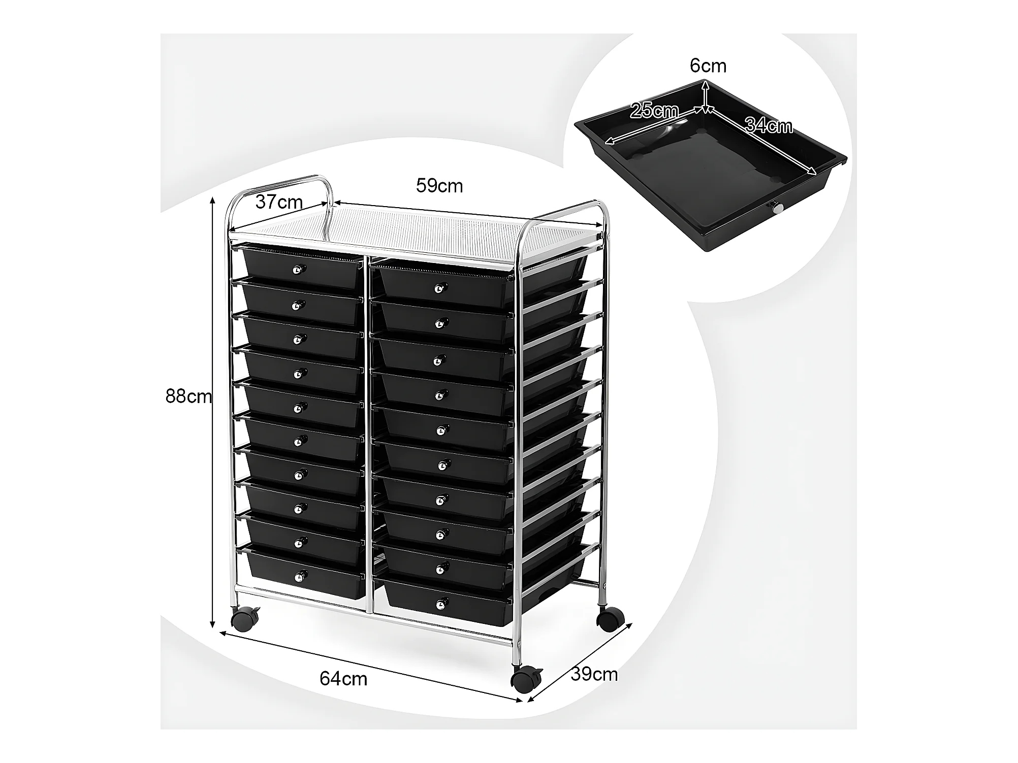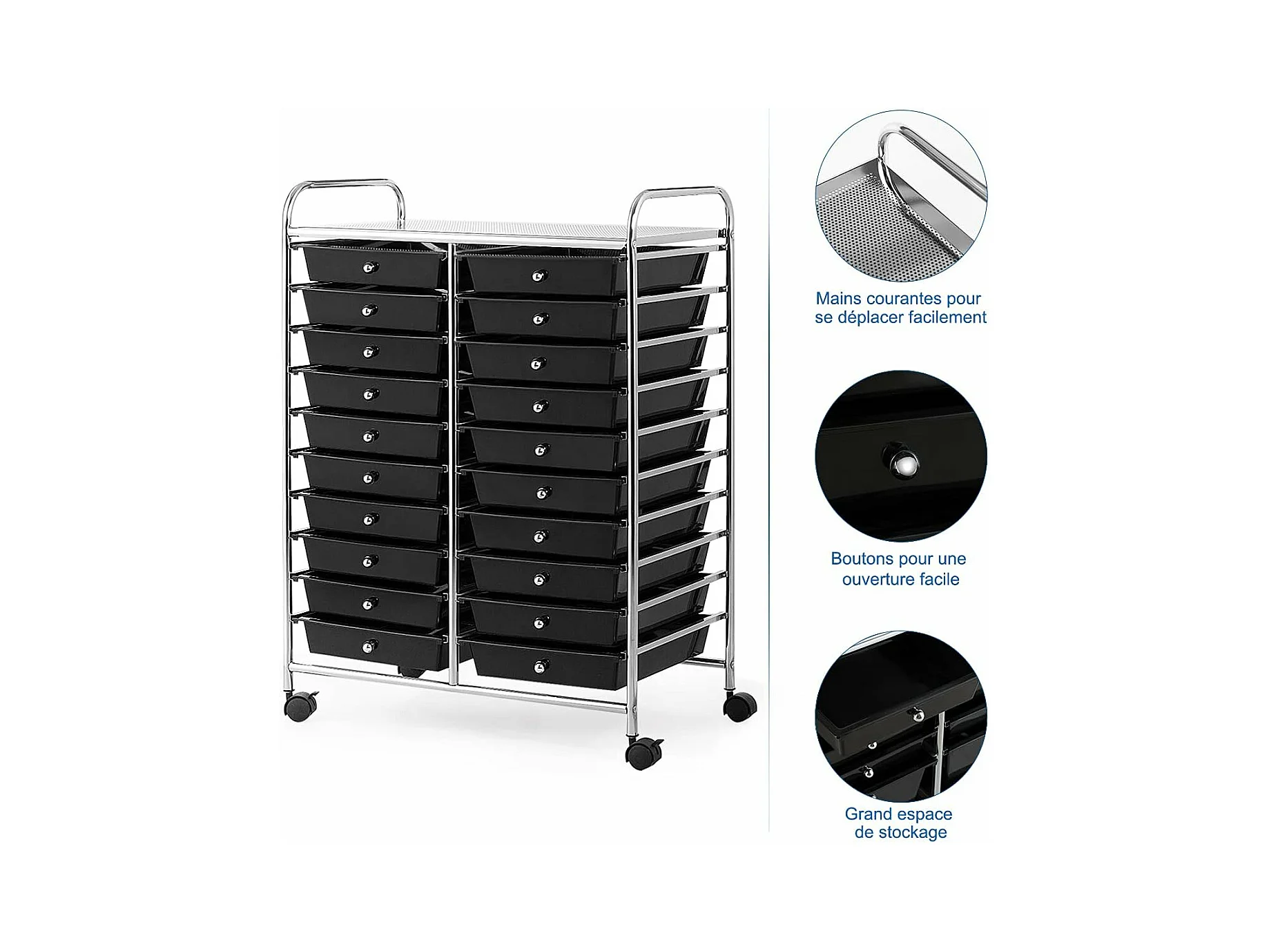 Tour de rangement sur roulettes avec 20 tiroirs 64 x 39 x 88 cm