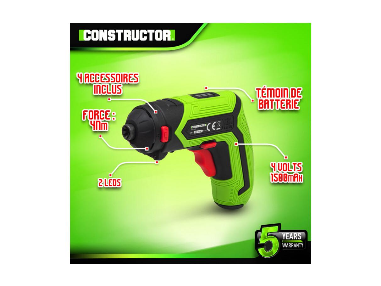 Tournevis rechargeable 4V Lithium + accessoires - Constructor