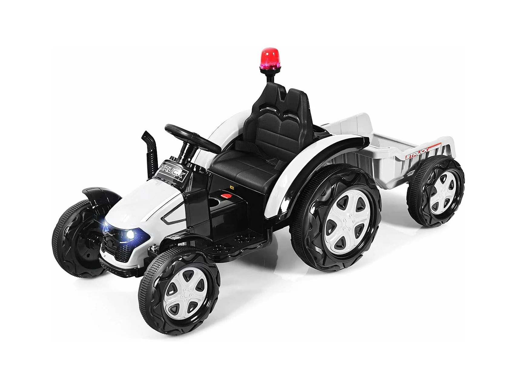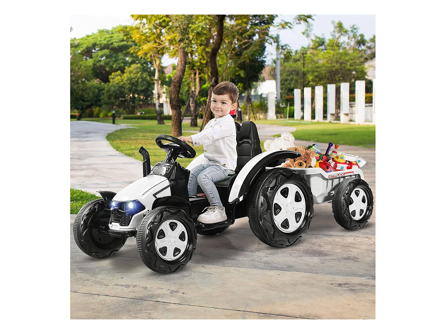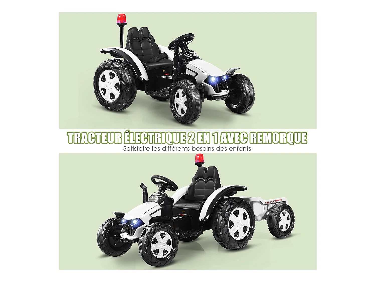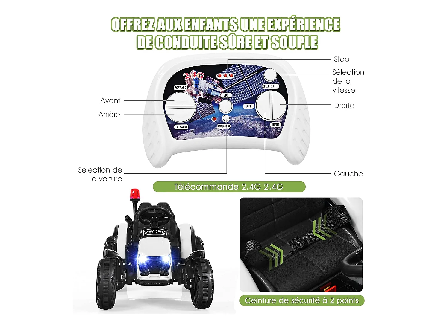 Tracteur Electrique avec Télécommande 2.4G,12V 7AH, Vitesse : 3-8 km/h , MP3, Port USB pour Enfants de 3 à 8 Ans Blanc