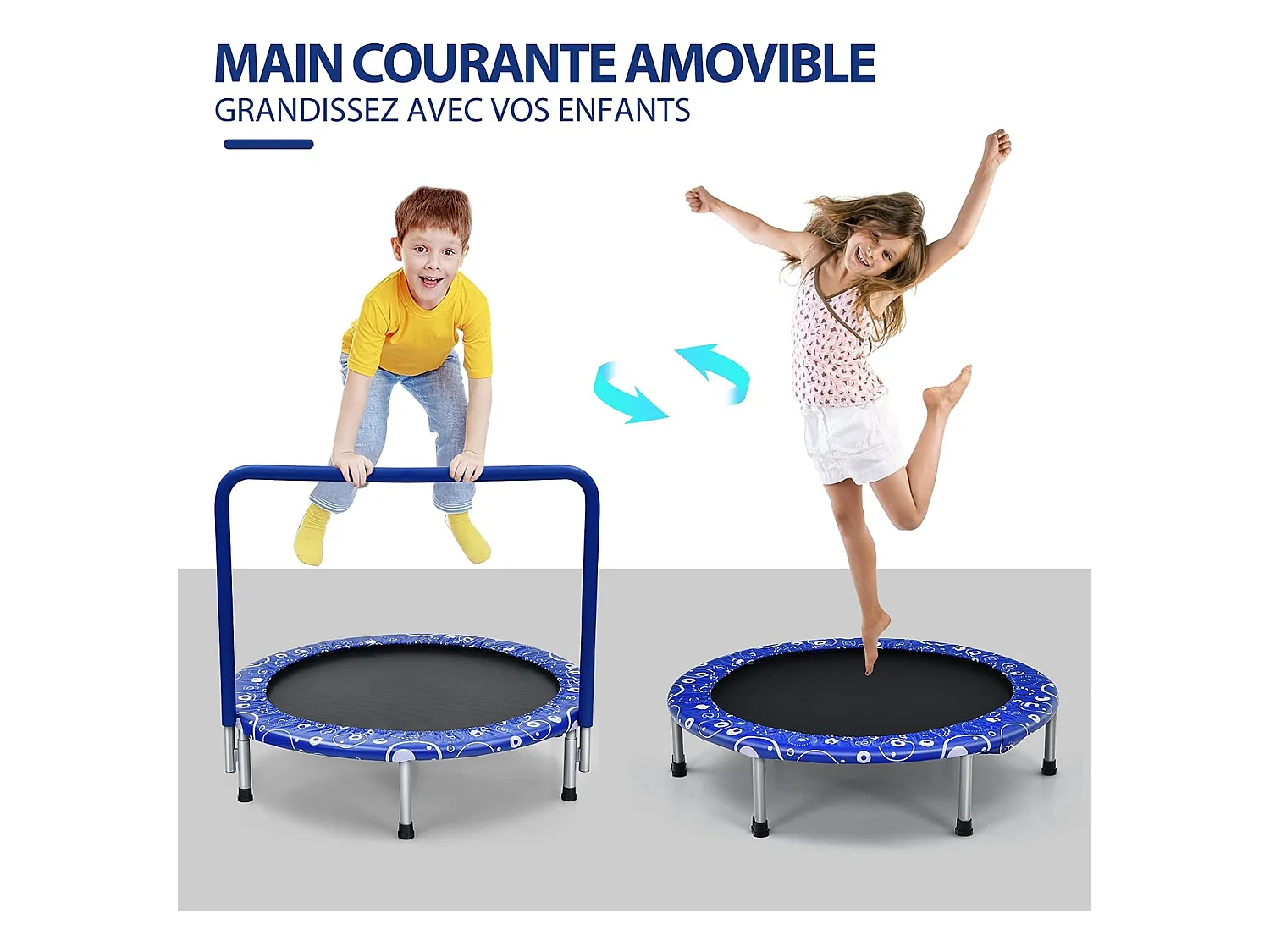 Trampoline Pliable pour 2 Enfants Intérieur/Extérieur avec Main Courante Ajustable Coussin Tapis de Saut Charge 150kg Bleu