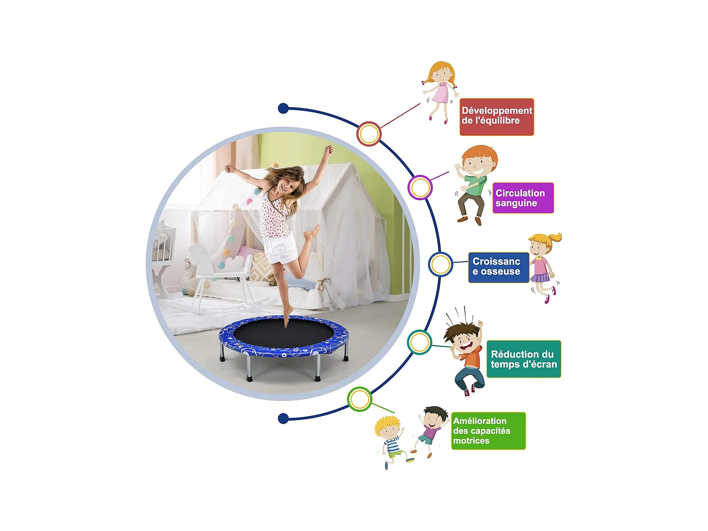 Mini Trampoline Pliable pour 2 Enfants Intérieur/Extérieur avec Coussin de Sécurité Charge 150kg Bleu